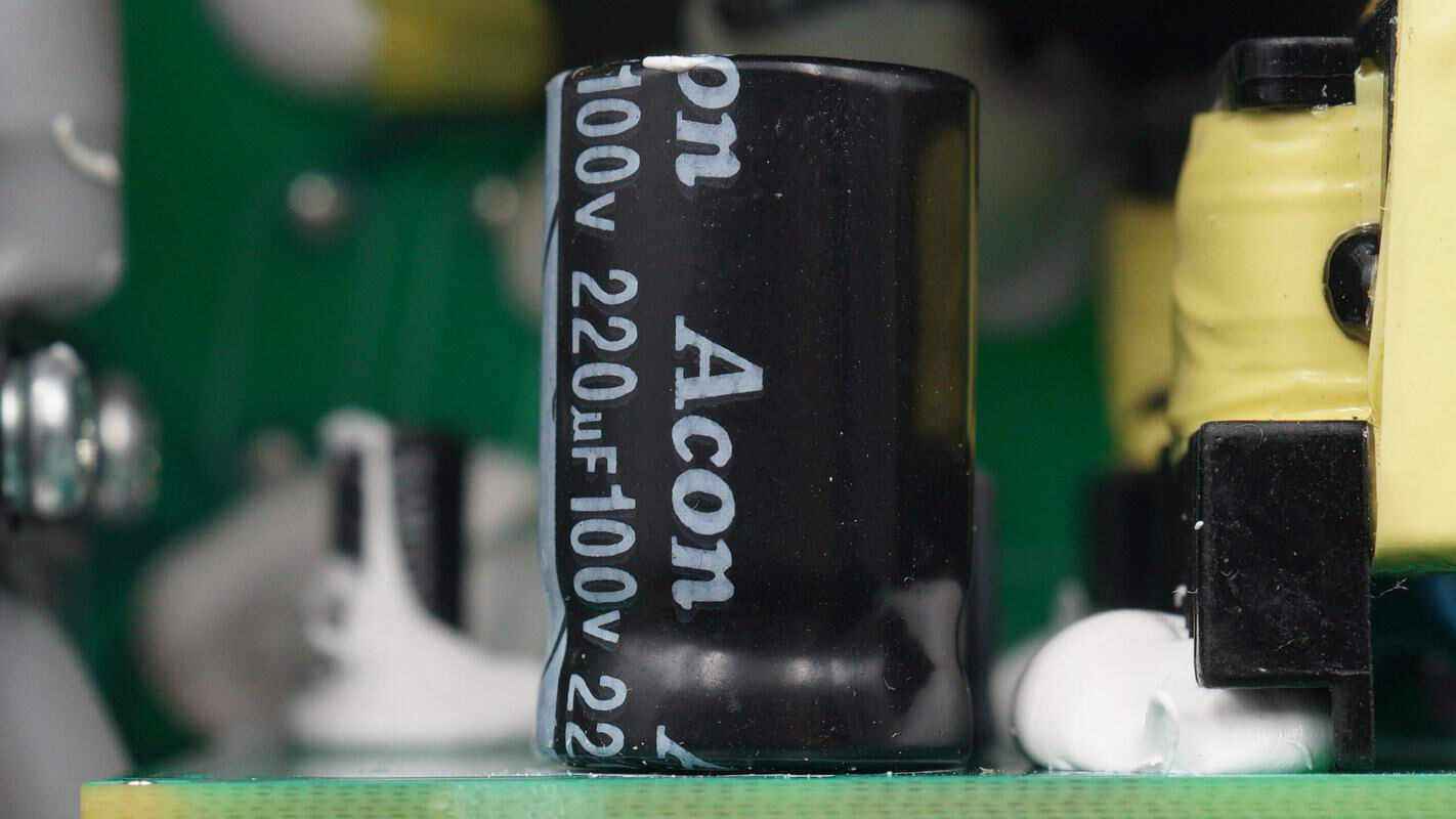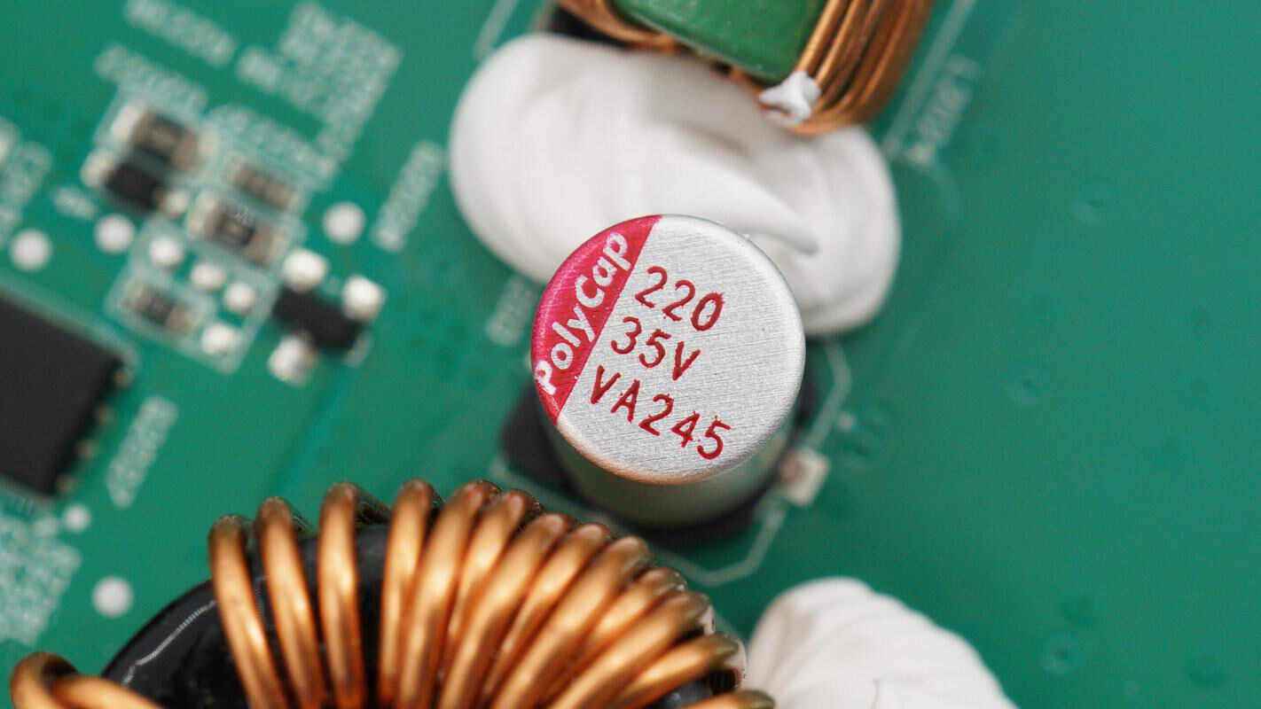 滤波电容来自PolyCap柏瑞凯,为RT系列高纹波电流产品,规格为100μF100V,六颗并联。