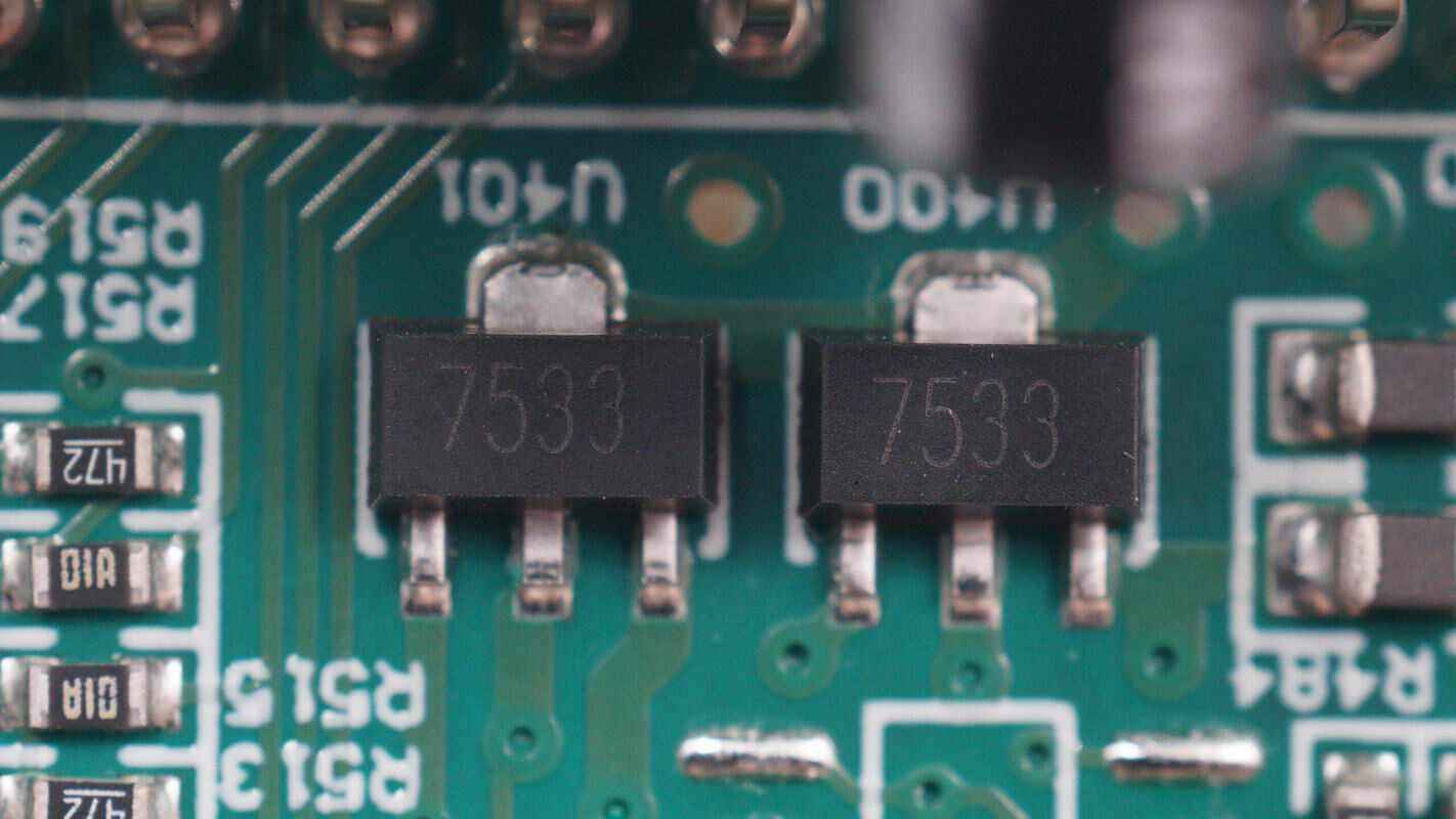 两颗7533稳压芯片用于为主控芯片稳压供电。