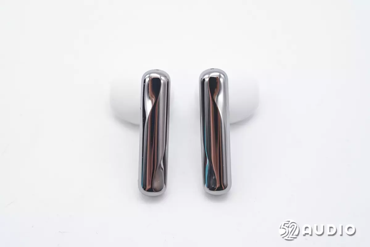 耳机柄同样采用了NCVM真空镀膜工艺,搭配两端不同平面设计,呈现了流光四溢的视觉效果,极具辨识度。