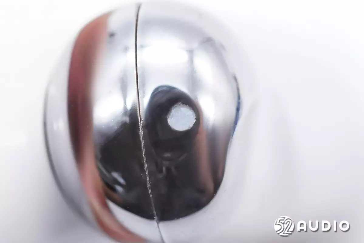 腔体顶端的通话降噪麦克风声学结构特写,提升密封性,进而提升收音效果。