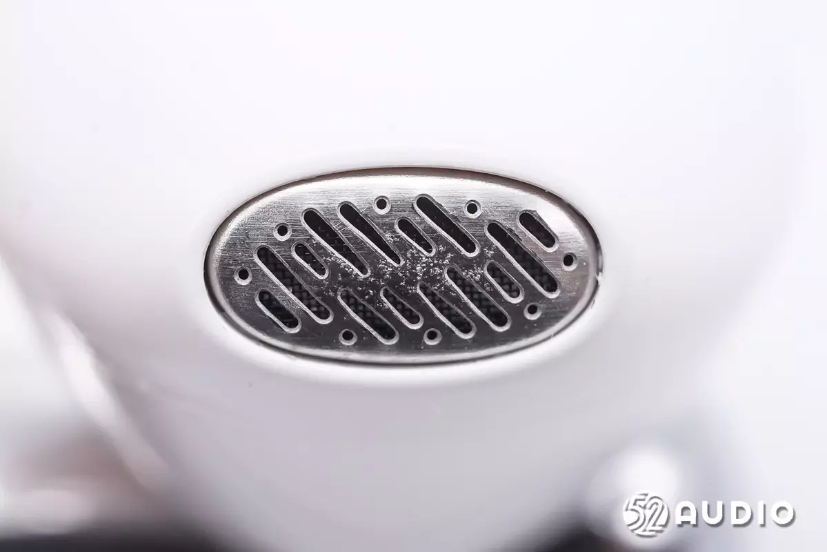 耳机倒相孔特写,连接到腔体内部的低音导管,提升低频性能。