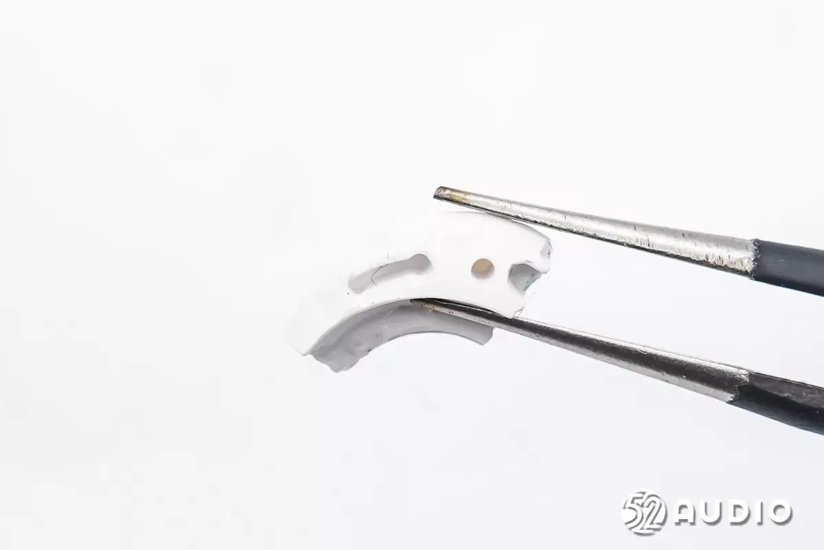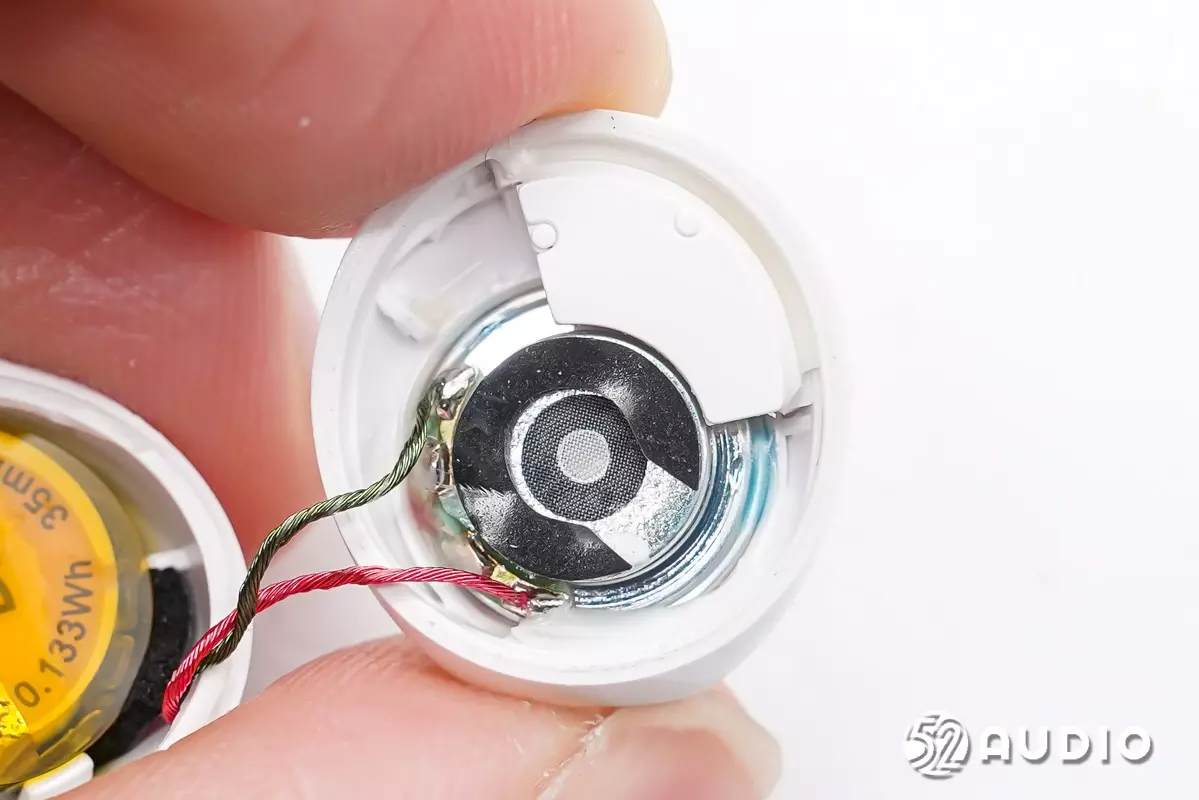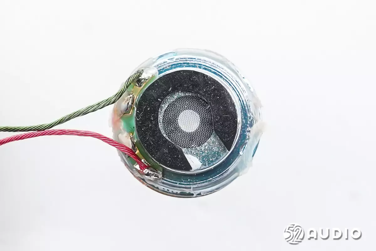 耳机前腔内部结构一览,扬声器上方设计有低音导管,提升低频量感。