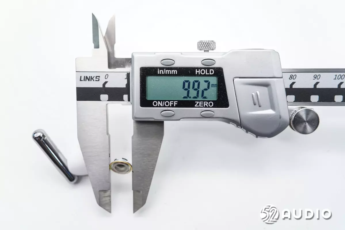 经我爱音频网实测,扬声器尺寸约为10mm。