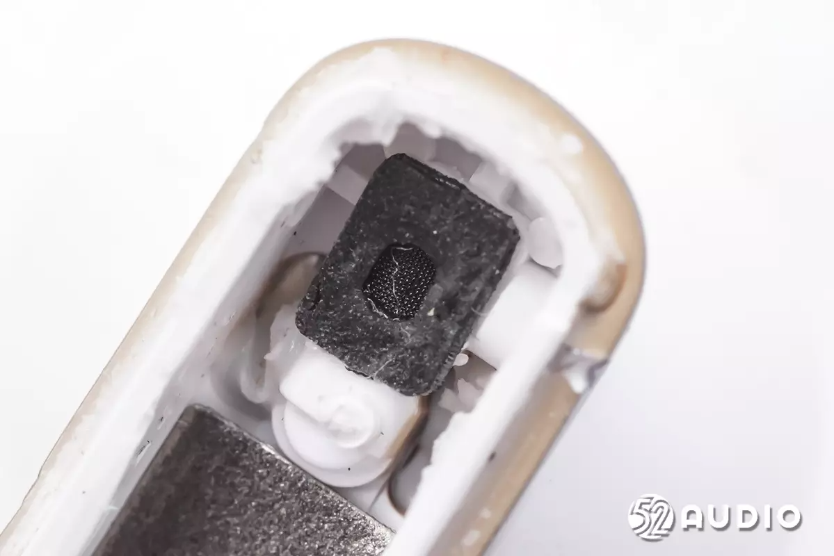 取出前腔内部扬声器和低音导管,腔体内部结构一览,开孔均通过细密防尘网防护,防止异物进入音腔。