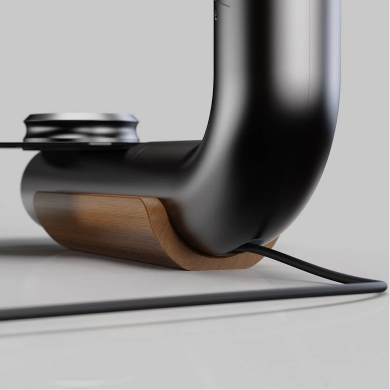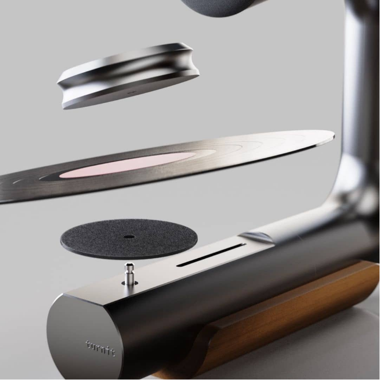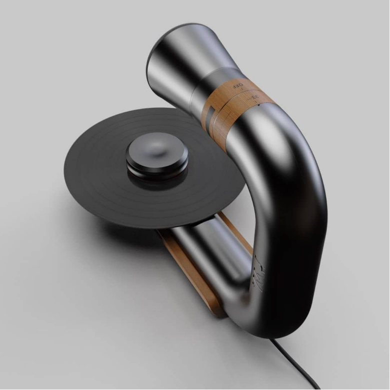 一款可以播放唱片的现代简约风格的音乐播放器。设计师计划使用铝制“C”形弯管来塑造设备的主体,将唱片针隐藏下面。