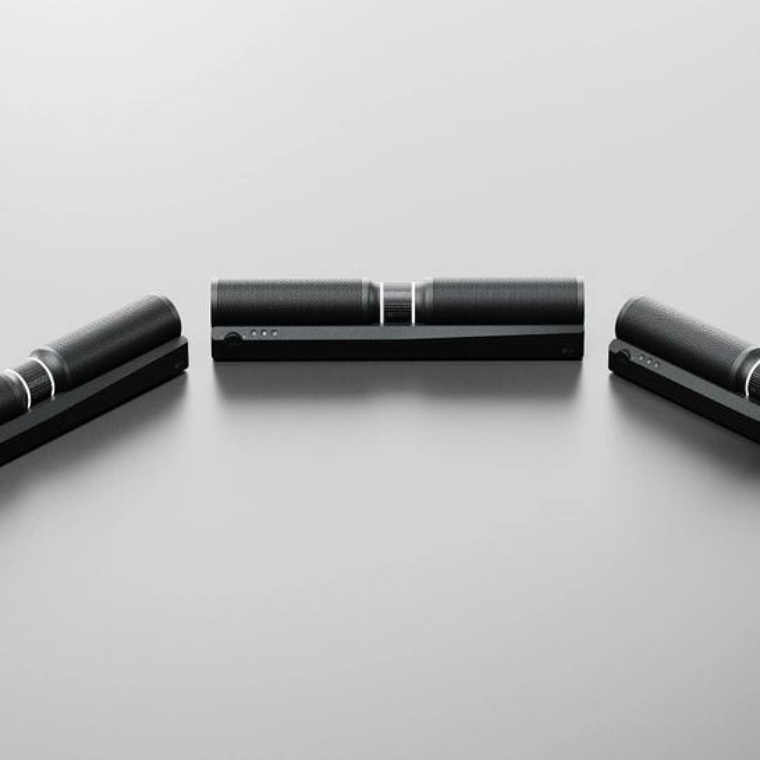 Modulespinner是一款游戏扬声播放器,有3个一模一样的圆柱形播放器组成。将3个播放器放在房间不同的位置,可以营造沉浸式的游戏音响氛围。用户也可以根据自身喜好个性化定制每个播放器的音乐。