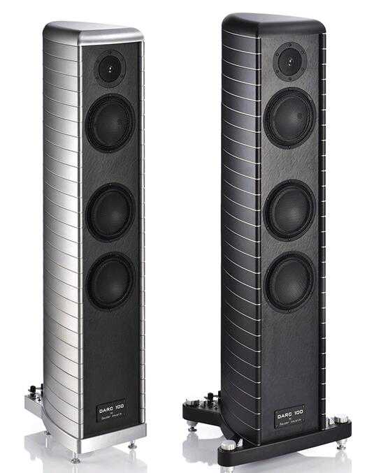 这款Darc100采3音路4单元设计,搭载2只7吋低音单元,再加上1只拥有超轻振膜搭配磁力强劲的钕铁硼磁铁中音,以及1只陶瓷高音(也可以升级钻石高音),分音器采用60dB/octave高斜率的分频网络,并且使用了Mundorf组件,位于后侧的音箱端子选用WBT-Nextgen。