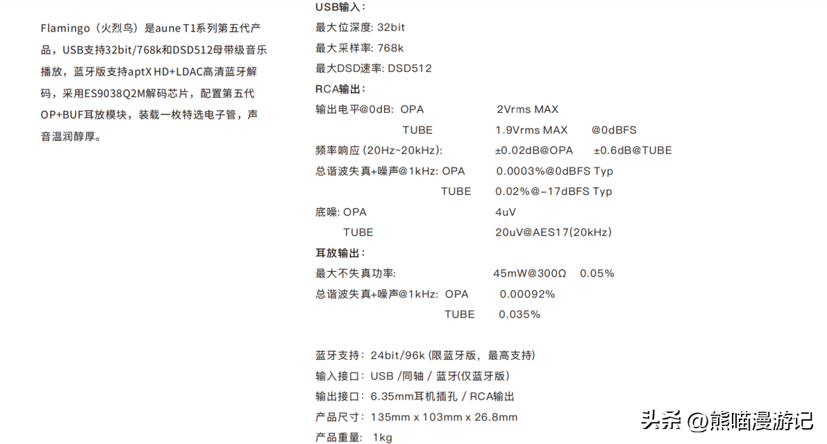 很多低预算的烧友都想尝试下胆机是个什么声音,但要找到一款价格便宜,声音不差的胆机挺难的,还好老牌HiFi大厂奥莱尔aune解决了这个难题,推出了一款发行价仅需1099的解码耳放胆机一体机,火烈鸟虽说便宜,但在接口配置,解码性能上没有做任何阉割,火烈鸟支持DSD512硬解,32bit/768k解码,内置OPA运放,几乎0底噪,支持蓝牙功能(带蓝牙版)支持多种接口,日常使用基本上没什么问题。