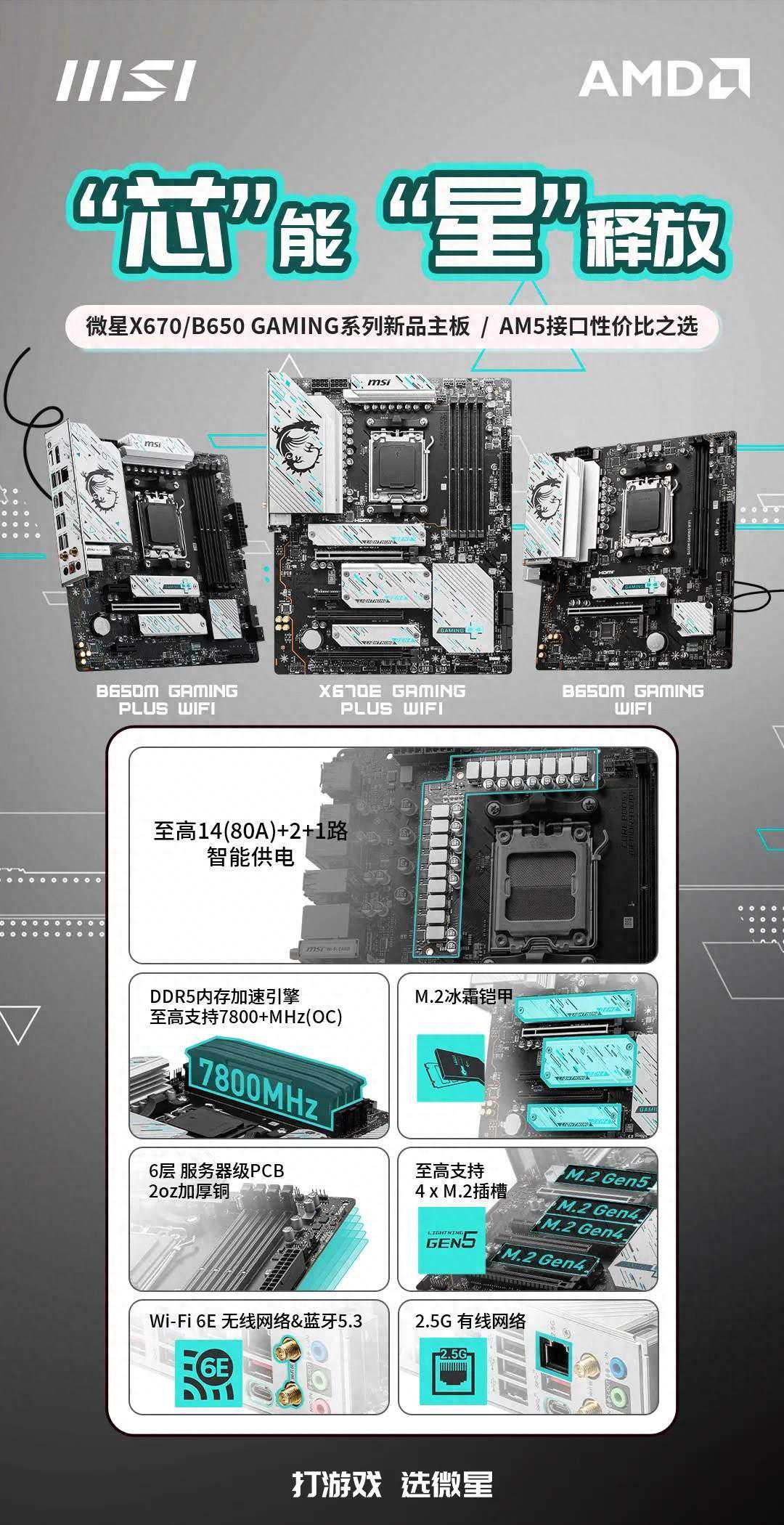 近日,微星宣布,推出三款GAMING系列AM5平台主板,包括B650MGAMINGWIFI、B650MGAMINGPLUSWIFI以及X670EGAMINGPLUSWIFI,官方零售价分别为999元、1099元和2399元。目前,其中两款新品已经上架至微星京东官方自营店铺,4月30日前领取优惠券后可享受100元或以上的优惠,而B650MGAMINGPLUSWIFI在第三方店铺有售,相信不久后自营店铺也会跟进上架。