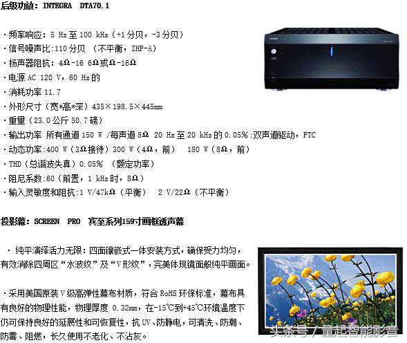 考虑到将视听室空间的最大化利用,同时达到最佳的视听效果,我们将采用9.2声道影院音箱,其中除低音炮外均为嵌墙式音箱。投影幕布方面,综合考虑前墙宽度,观影距离,房间高度,以及观影效果,建议幕布采用美国锐普159寸画框透声幕。以下是我们为本案推荐选择的主设备。