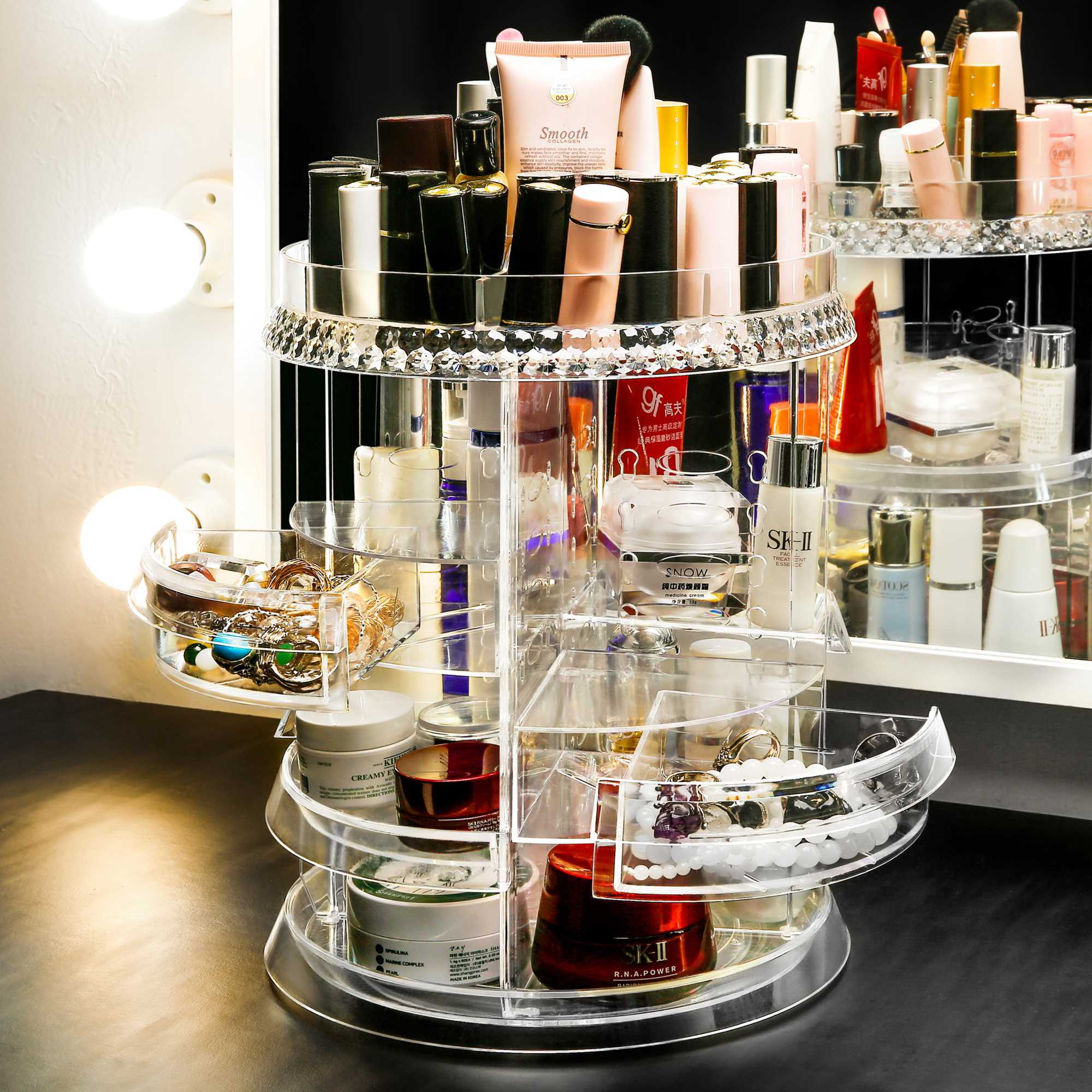 外型小巧的回转式收纳盒。呈螺旋状开关,可轻松取用小东西的收纳盒,最适合分类存放饰品或药品。白色三层回转收纳盒(w20cm×)。