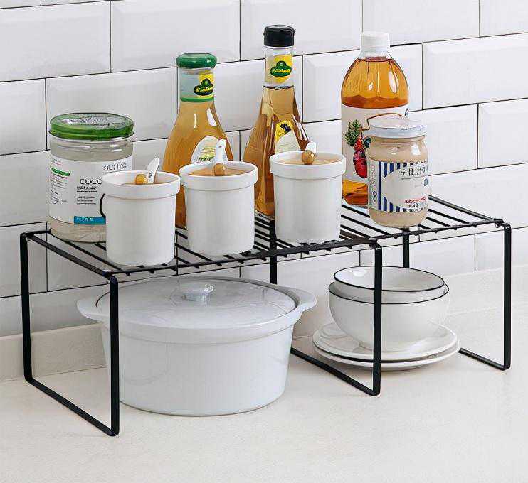 门字形折叠架。可以善用垂直的空间,是最常见的收纳用品。边缘往上翘起,可防止物品掉落,也可往上堆叠多层。FV附边堆叠架(大,w33cm×D24cm×H17cm)。