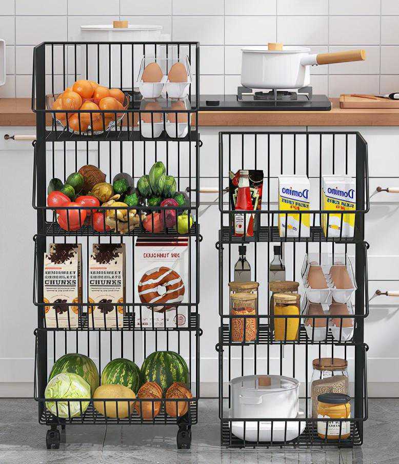 任何缝隙都能成为收纳空间。以1cm为单位调整的层板与抽屉式设计十分好用,这款骨轮收纳柜可不分左右设置。厨房双向缝隙收纳柜(W10cm×D44cm×H181cm)。