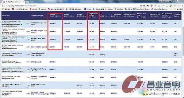 再来我们比较同样原始分辨率都是352.8kHz/24bit的FLAC档案和经过MQA编码处理的档案(扩展名也是FLAC),两者都具备展现352.8kHz/24bit音质的潜力,都是一样长度的立体声曲目,经过MQA编码之后的档案大幅缩小,差距最多的可以达到八倍以上,差距最小的也有五倍左右。