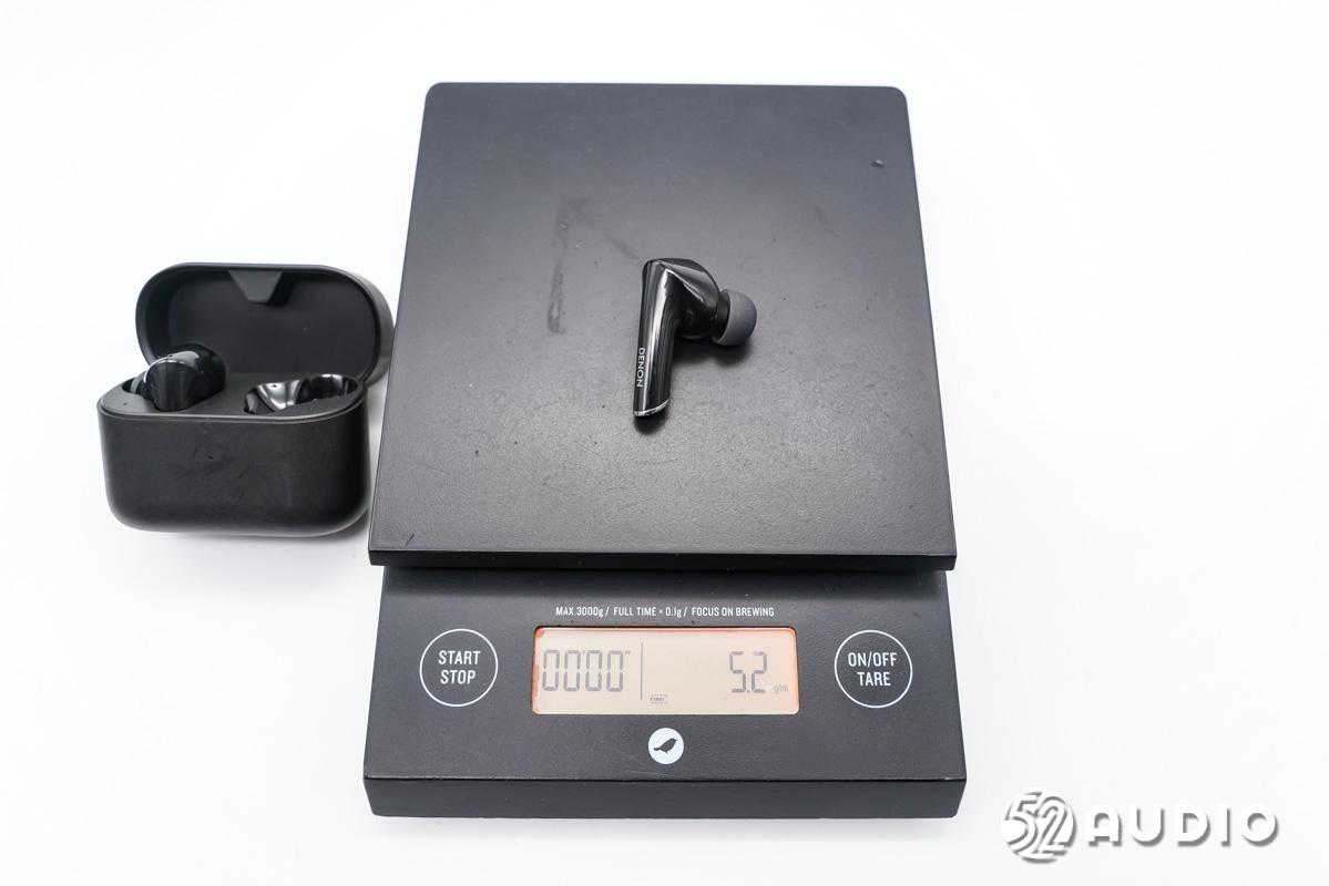 经我爱音频网实测,天龙DENONAH-C830NCW真无线降噪耳机整体重量约为51.8g。