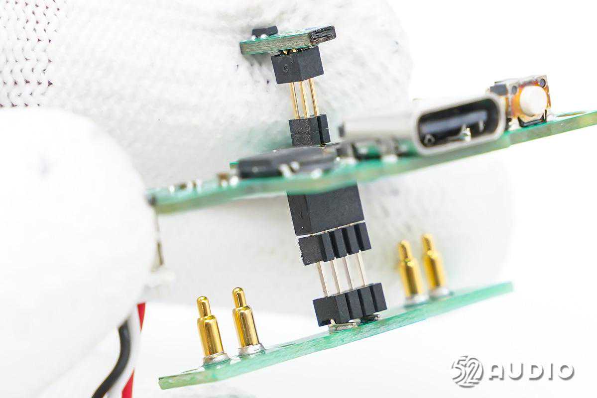 主板末端用于连接尾塞连接器为耳机充电的金属弹片。