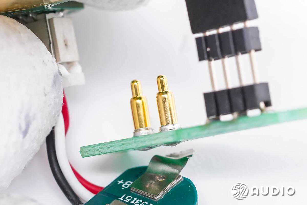 充电盒为耳机充电的PogoPin连接器特写。