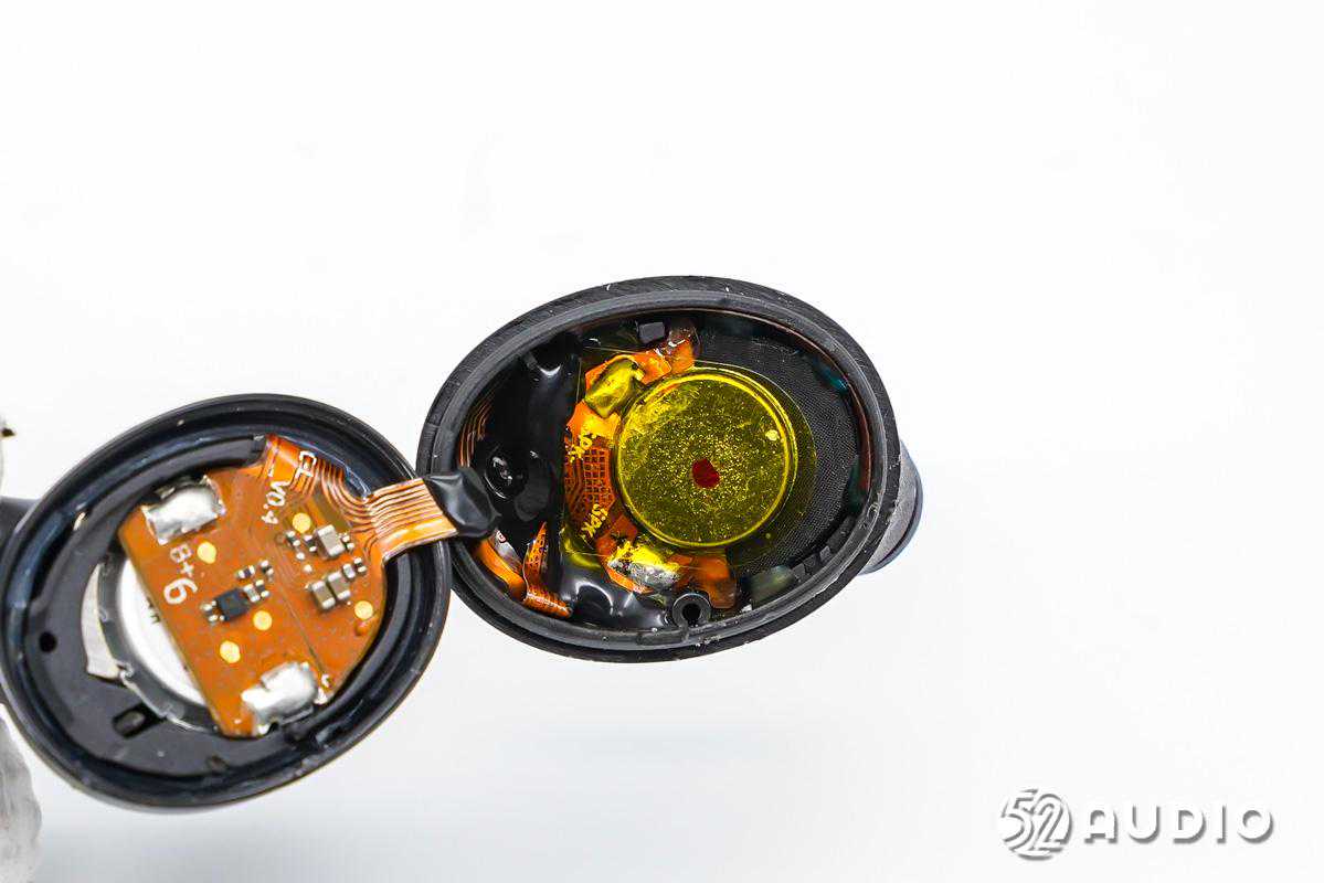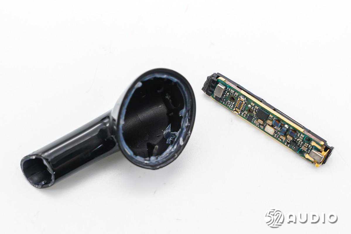 后腔底部可以看到耳机柄内主板单元。