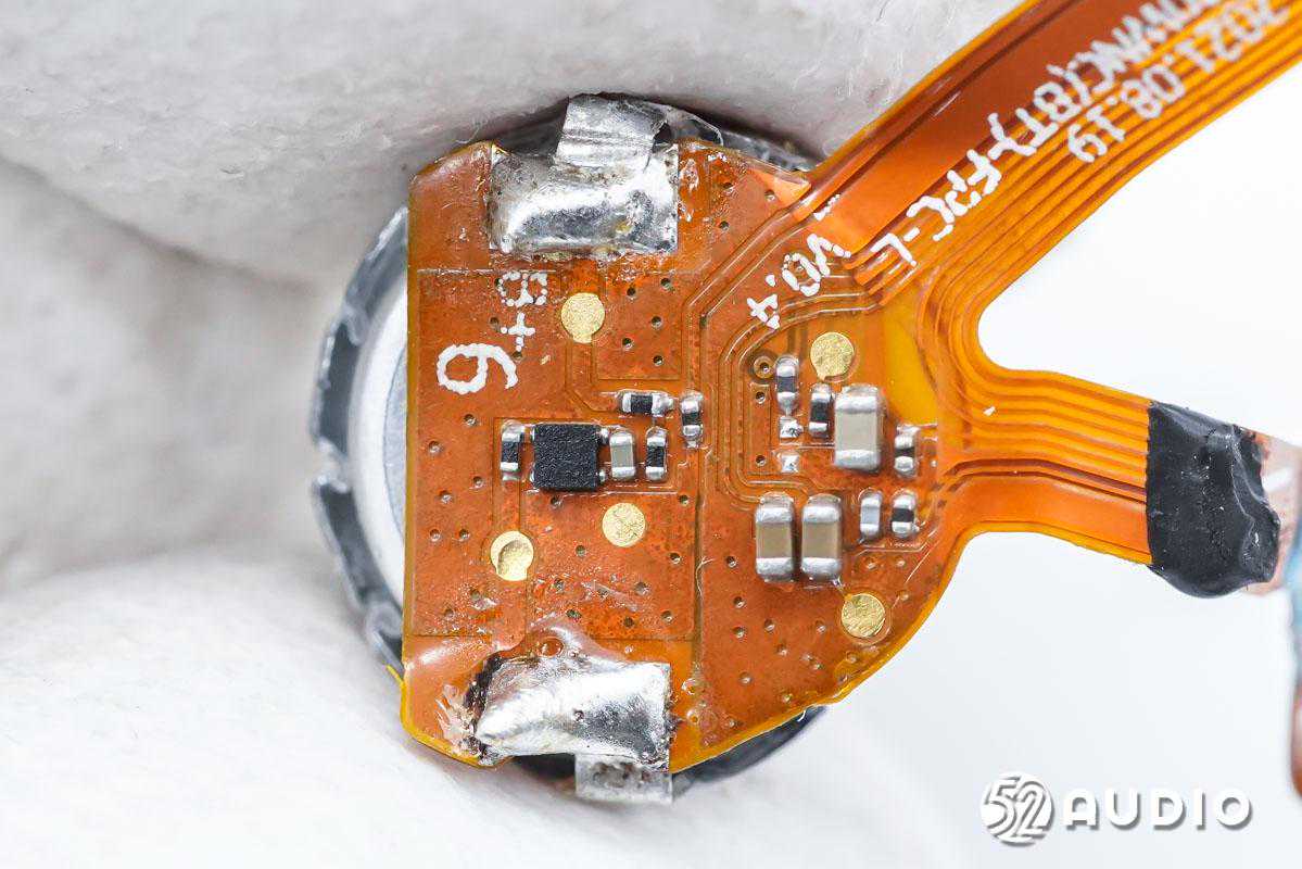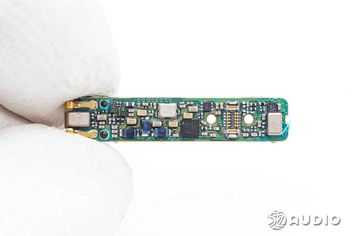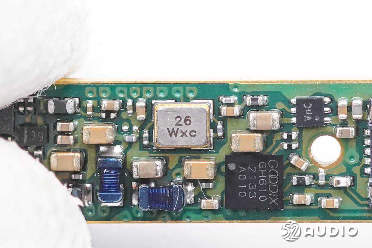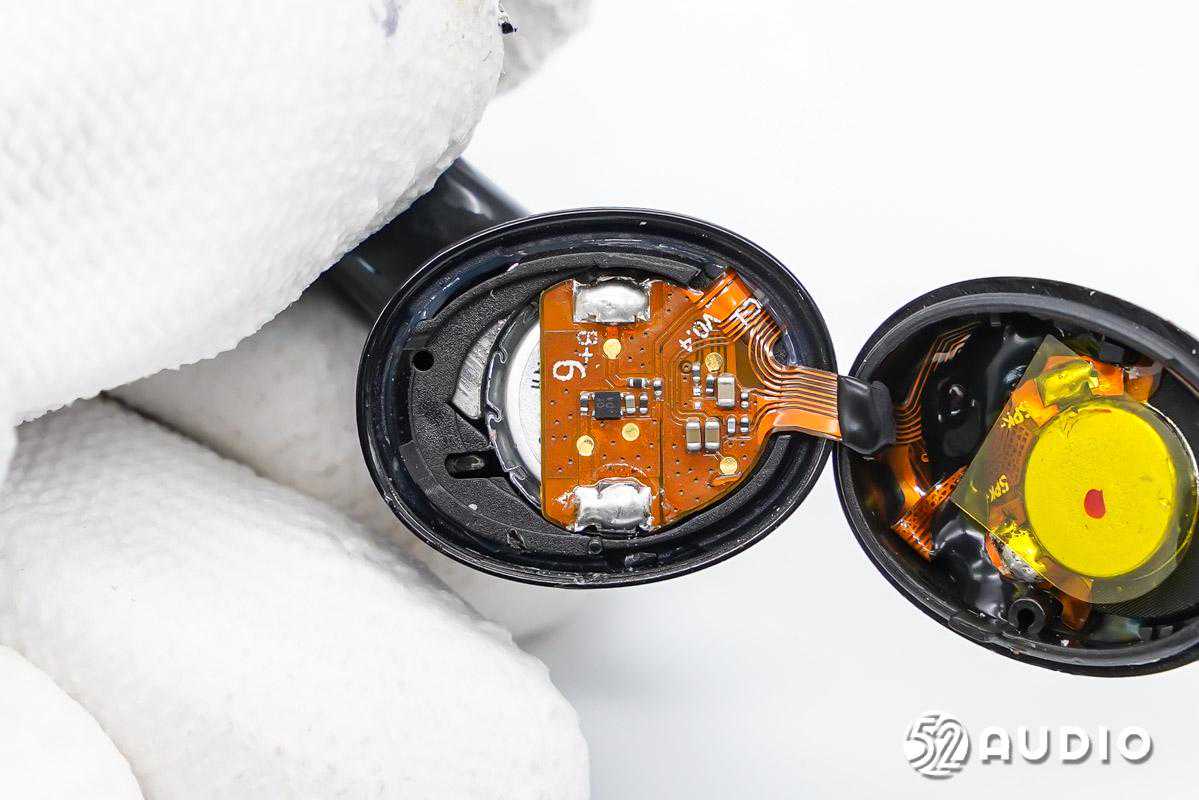 耳机内置恒泰科技43mAh软包扣式电池;搭载椭圆形的11x10mm动圈单元,提供强劲低音、广阔的空间表现力和动态;内置三颗新港电子MEMS麦克风,用于混和主动降噪功能和高品质通话。耳机主控芯片为恒玄BES2300蓝牙音频SoC,支持蓝牙5.0,全集成芯片实现高音质和主动降噪;汇顶科技GH610电容式入耳检测及触控2合1芯片,用于入耳检测和触摸控制。PCB金属化包边,抗干扰能力更强。