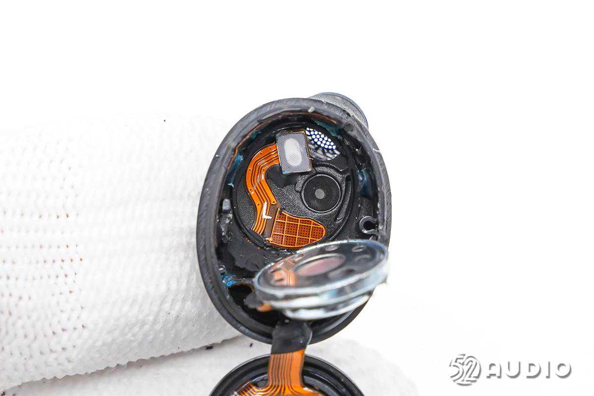 前腔内部结构一览,扬声器上贴有绝缘胶带防护。
