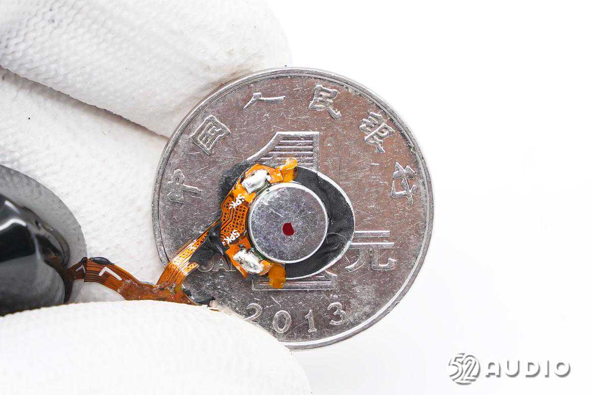 扬声器与一元硬币大小对比。