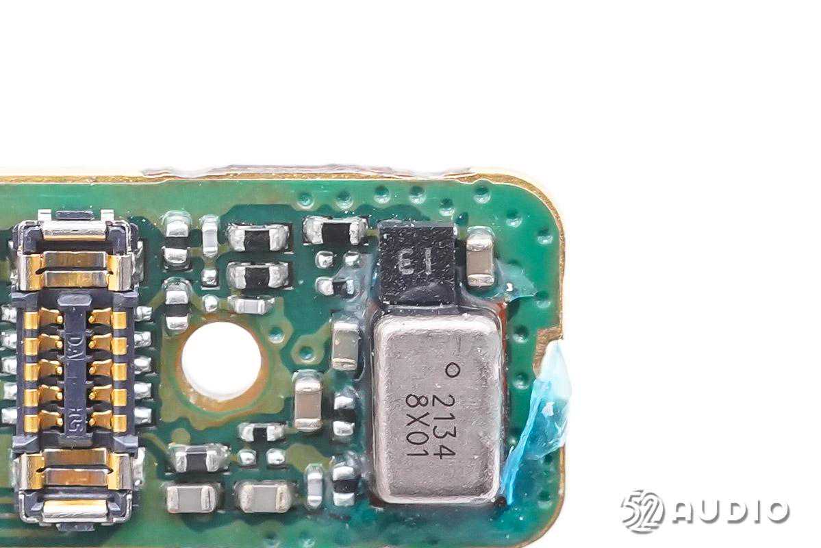 为蓝牙芯片提供时钟的无源晶振特写。