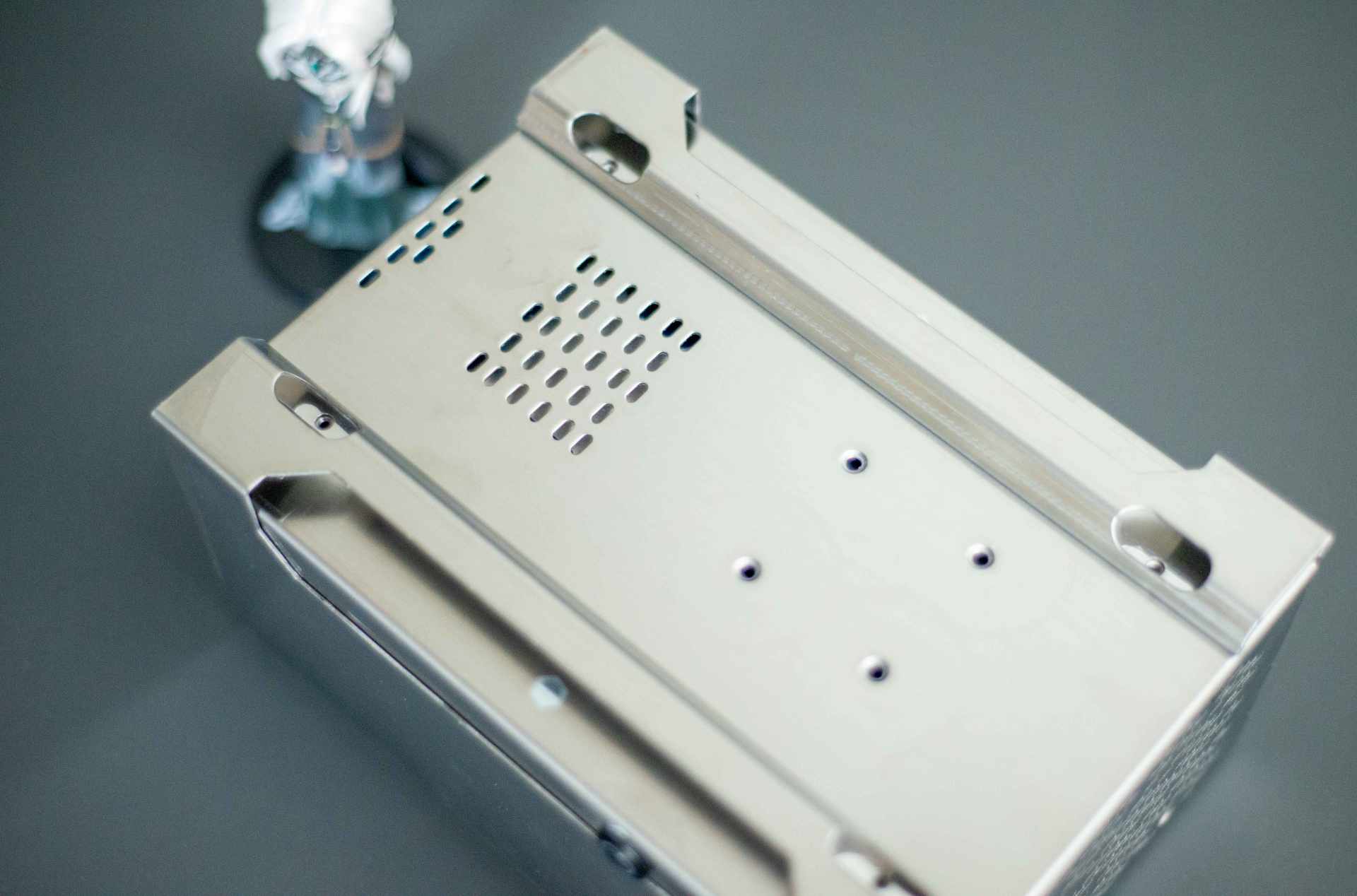 ▼上面这块钢板是固定硬盘用的,看得出来是直接弯折处理,原汁原味。支持两块3.5吋/2.5吋机械硬盘,不过没有快拆设计。