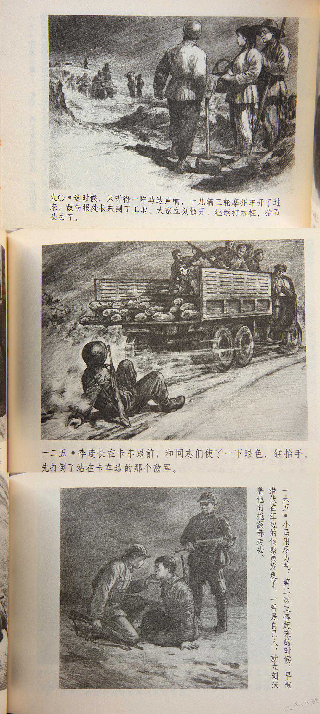《渡江侦察记》是铅笔连环画的天花板,五六十年代的受限于印刷技术和小尺寸的开本,并不能将顾炳鑫的原稿魅力充分表现出来。