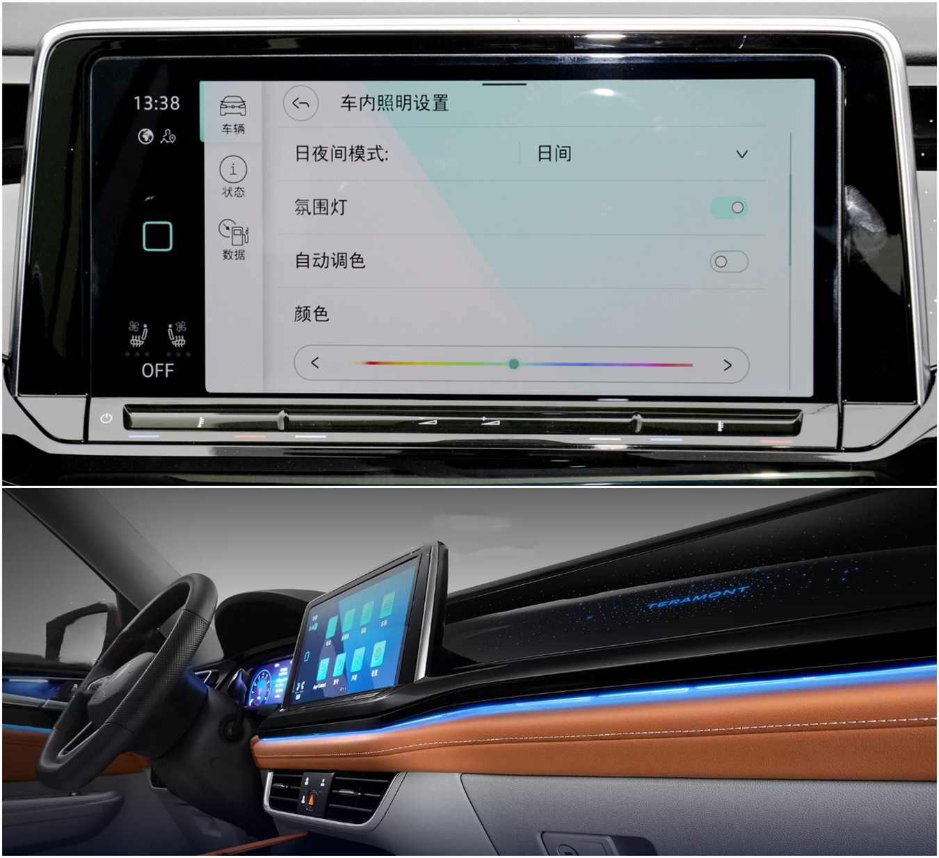 330TSI两驱豪华版、380TSI四驱豪华版配备单色氛围灯,其他车型配备30色氛围灯。