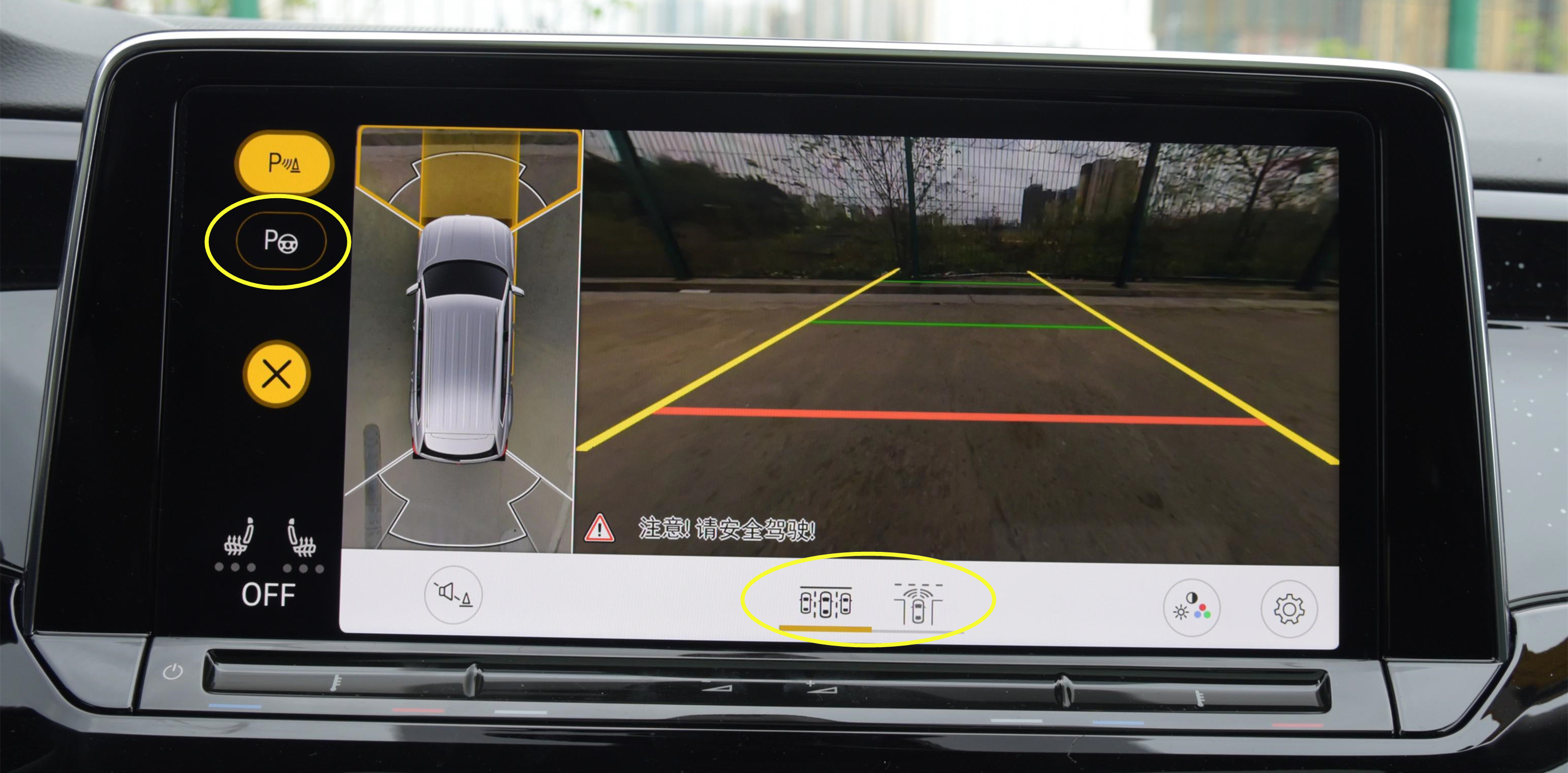 全系标配前倒车雷达和后倒车雷达。