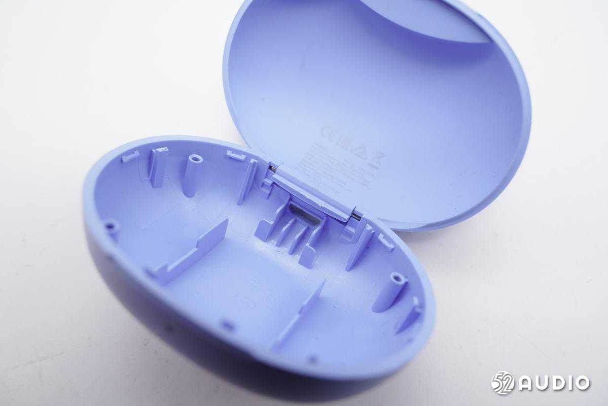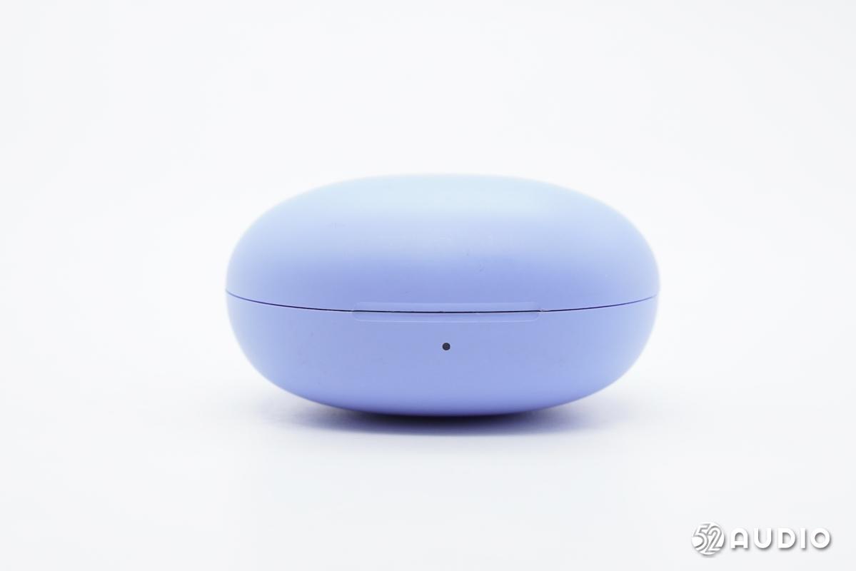 充电盒正面有一道凹槽便于开启,凹槽下面是一个充电盒指示灯。