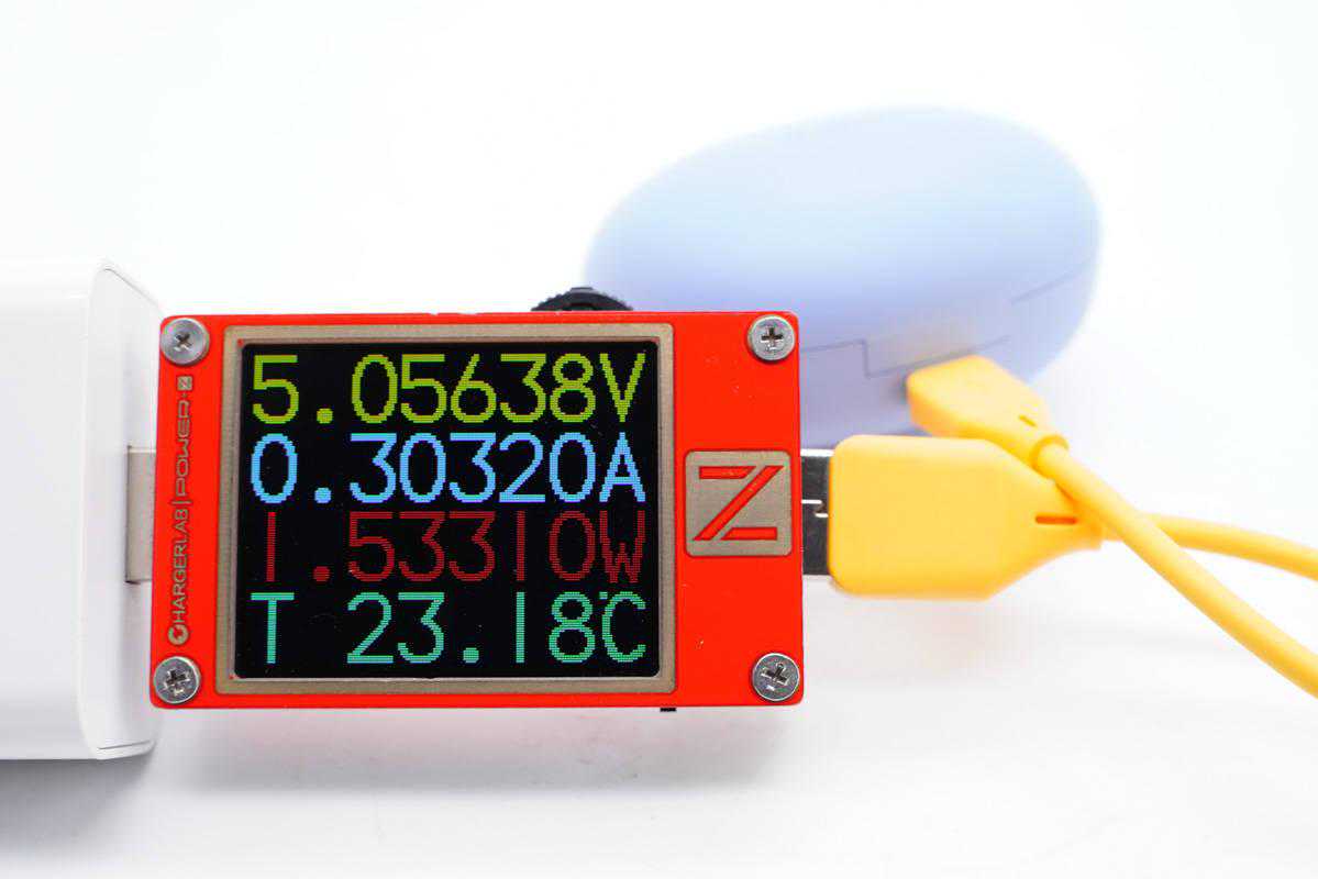 我爱音频网采用ChargerLABPOWER-ZKT002便携式电源测试仪对realmeBudsQ2真无线耳机进行有线充电测试,充电功率约为1.53W,充电电压约为5.06V,充电电流约为0.30A。