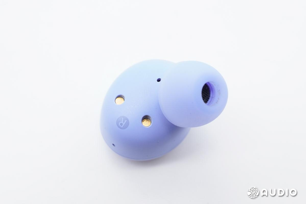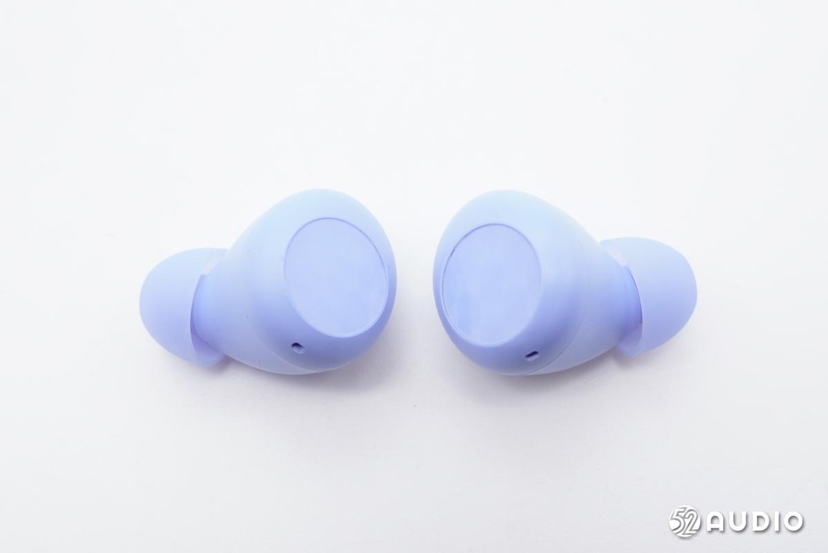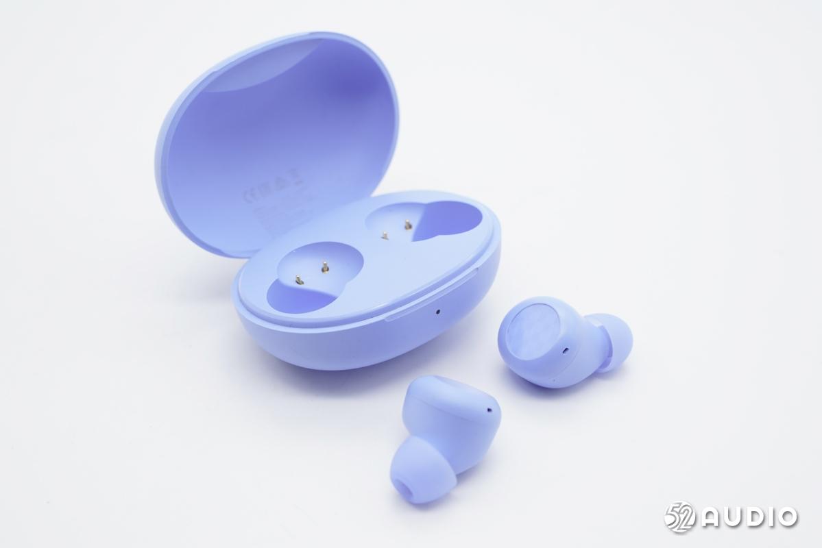 realmeBudsQ2真无线耳机采用豆状入耳设计,颜色依然为浅蓝色设计。