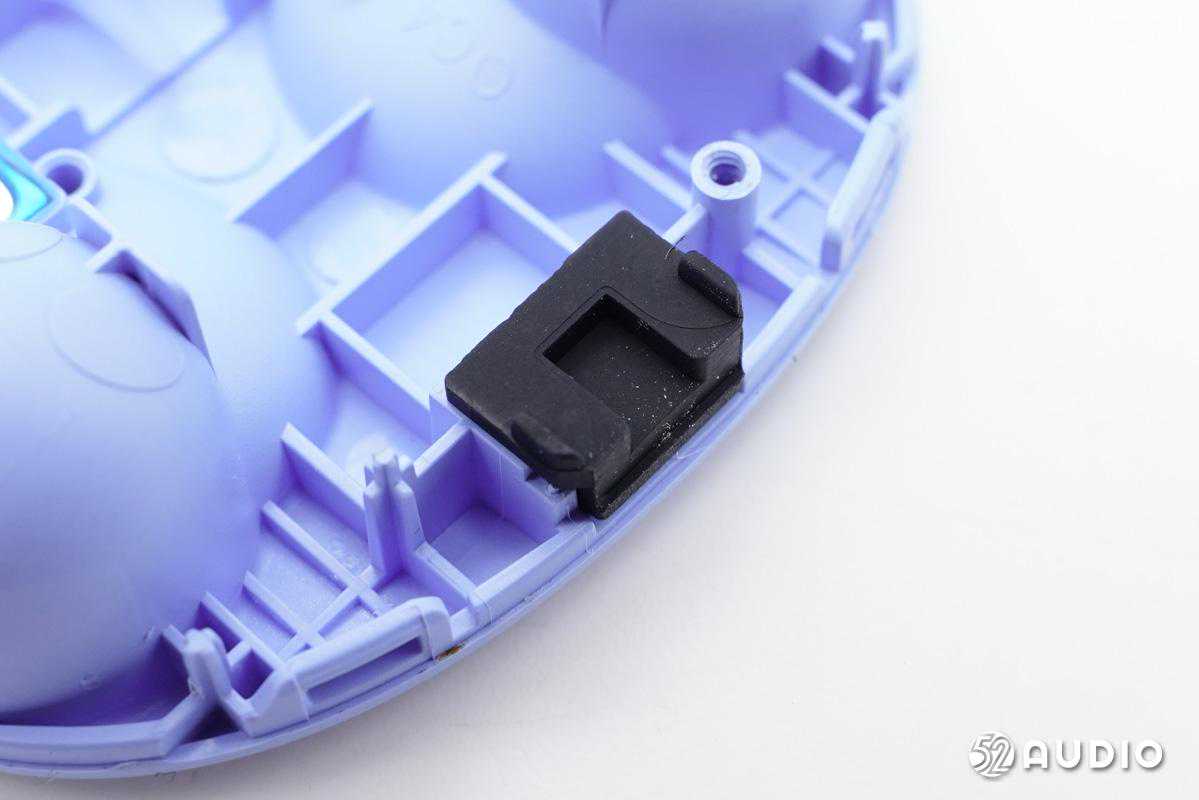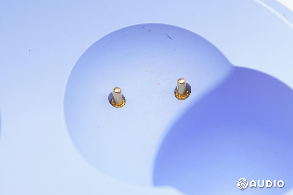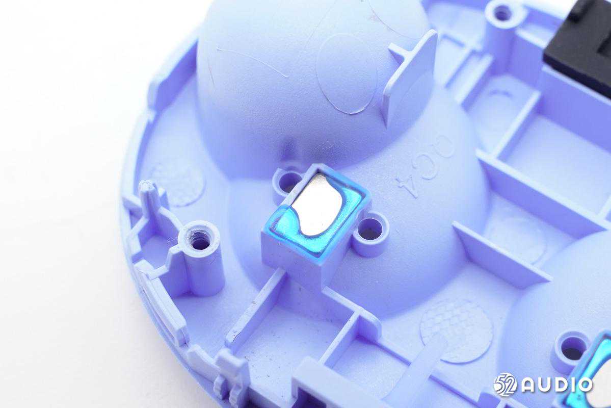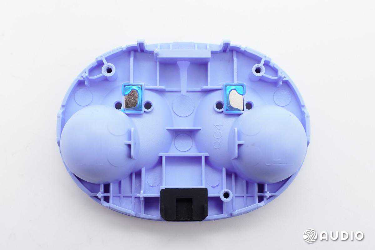 耳机座舱底部一览,设有两颗磁铁用于吸附耳机。