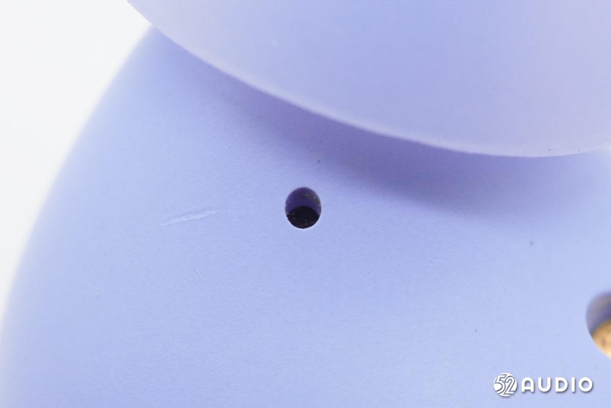 耳机一侧的泄压孔一览,用于平衡耳机内部气压,改善耳机音质。