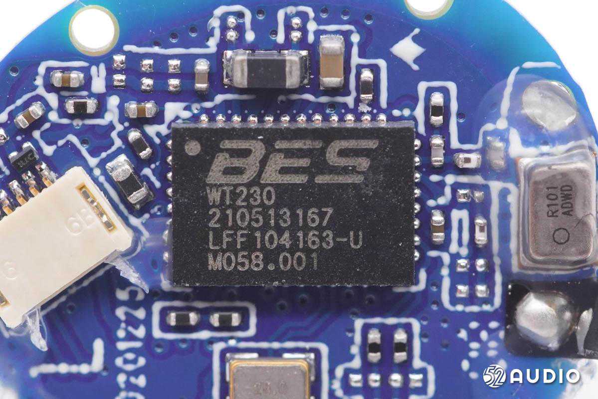 耳机的内部配置上,采用10mm低音动圈单元,带来更加强劲的低音体验。蓝牙功能方面,采用BES恒玄型号WT230的蓝牙SoC,支持蓝牙5.0双模、集成高性能Cortex-M4F核心的音频语音应用SoC,集成高性能音频解码器和无隔直电容耳机输出,内置Flash和MCU实现耳机