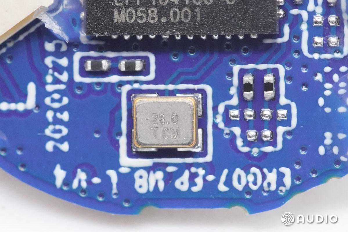 26.000MHZ的晶振特写,为蓝牙芯片提供时钟。