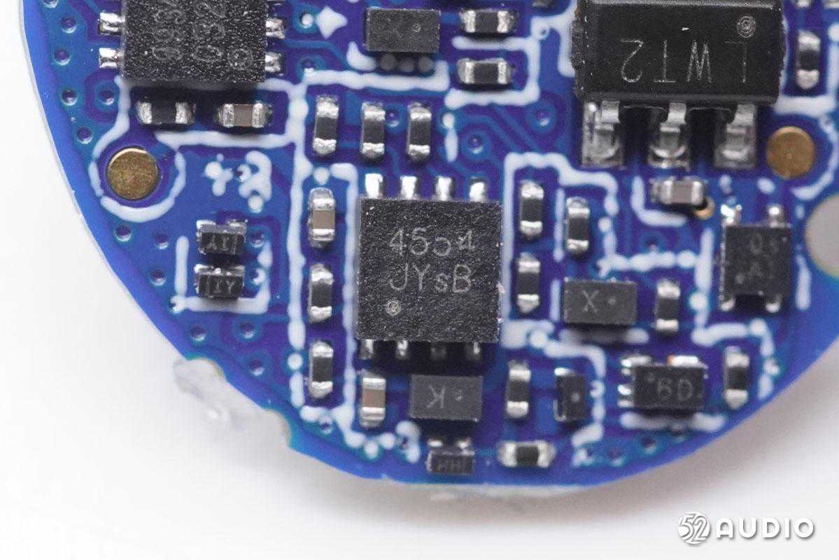 耳机采用SINOMUC晟矽微型号MC99348位单片机,用于当耳机在连接发生故障时,触发复位再次发射蓝牙信号,保障蓝牙不死机。同时,具有超低待机功耗,延长蓝牙耳机续航。续航方面,耳机电池同样采用了ZWD众旺德新能源的软包电池,电池额定容量0.15Wh,提供单次6小时的续航。采用Hypower瀚昕微HP4554带过压保护的高输入电压充电器,输入耐压24V,6.8V过压保护,充电电流和终止充电电流可编程,用于耳机内置电池充电。