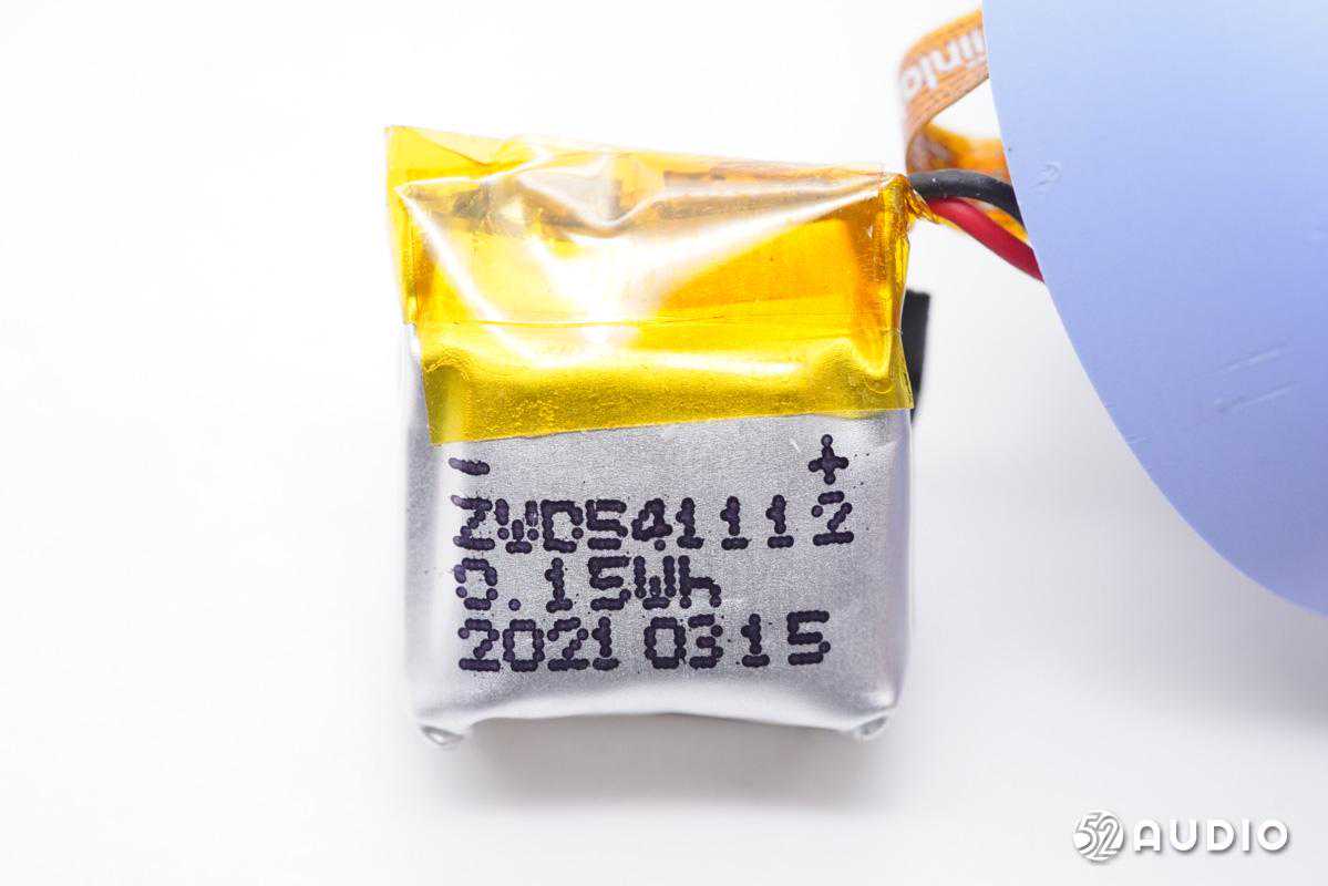 耳机软包电池特写,来自ZWD众旺德新能源,型号541112,电池额定容量0.15Wh。