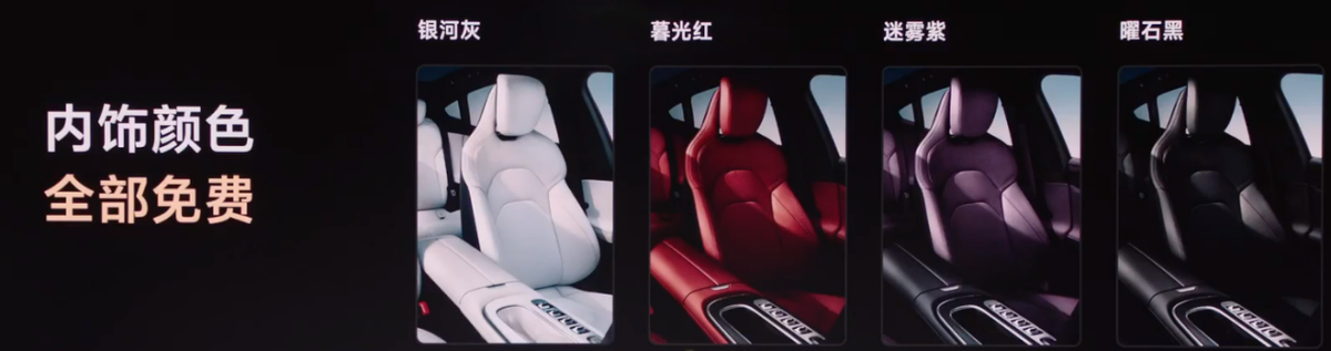 内饰有银河灰、暮光红、迷雾紫和耀石黑四种颜色,诶,都是免费的。