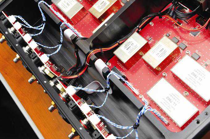 采用一大一小两金属机箱结构的Corus前级,在同时附设了各组输入与输出放大电路、音量衰减操控旋钮、数据显示屏、各项功能切换按钮、以及逻辑控制电路的大型金属主机箱,其内里主要被划分成四个独立式的间隔,来分别设立各组输入级与输出级电路、以及两声道合共8只作牛交连偶合式工作的Lundahl出品变压器。Corus前级的音量衰减操控电路,是由一组BurrBrown出品的芯片负责操控,可供用家从全衰减的0dB至全开的99.5dB之间,每级以均等的0.5dB为一级,进行递增或衰减合共提供199级操作!从而使得实际使用时,绝不会出现递增一级音量过大;或衰减一级音量太细,这种常见于同是采用级进式音量衰减操控前级的不理想现像!