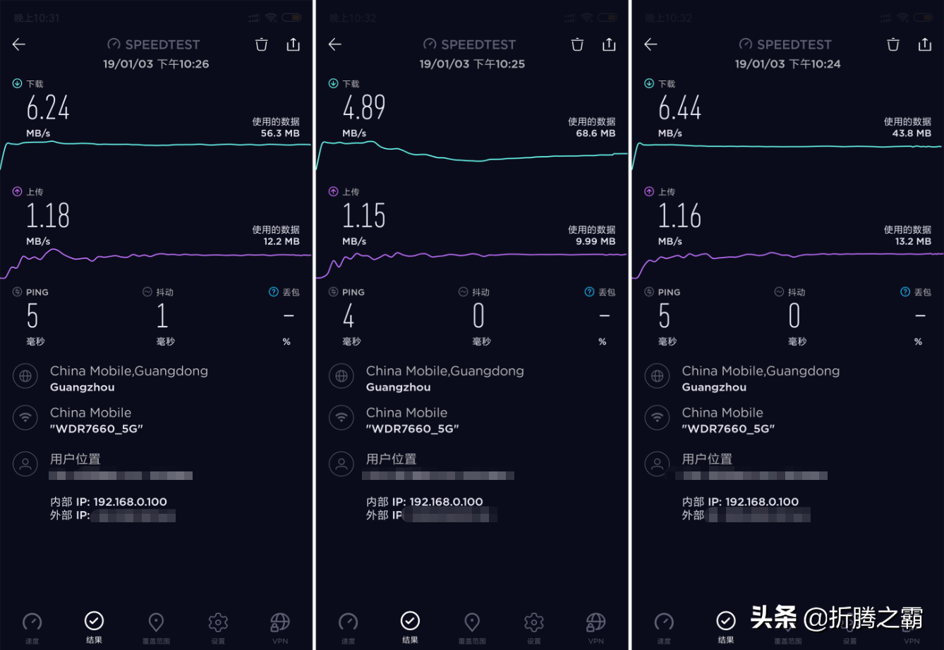 Speedtest用小米8手机连续测试三次,结果得出:D19G是D128G的2倍下载速度。