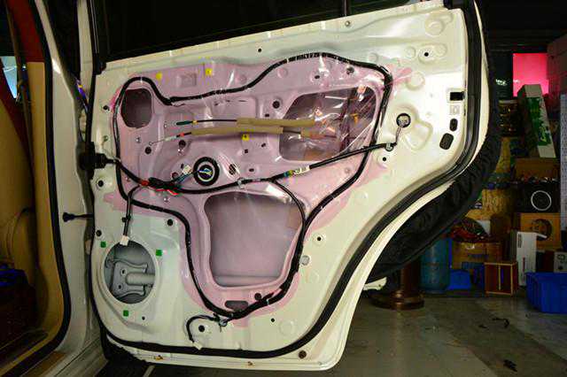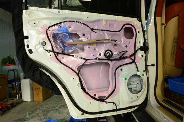 原车门板拆开后,里面只有一层薄膜,丝毫没有隔音的作用。车门隔音能彻底将车门变成一个扎实的固件,对消除车门空腔的共振和异响有著明显的作用,密封的车门像一个独立箱体一样,能提升喇叭的音质效果。
