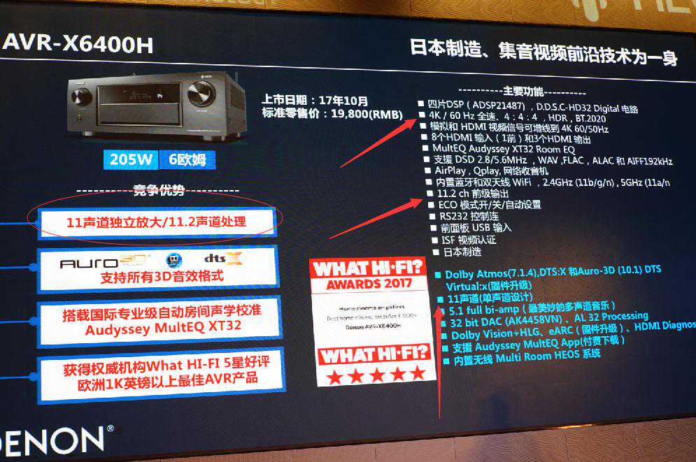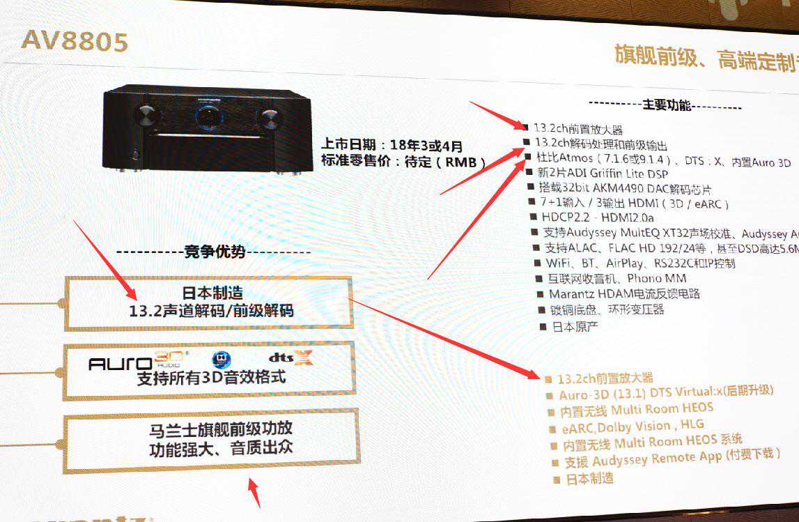 当然,最让人高兴的还是明年三月发布的AVR-X8500H,这台功放在这次大会上注名了与“传奇A1一脉相承”,加上13.2的独立放大,支持9.1.4或7.1.6的全景声,这是非常让摩大大期待的产品。