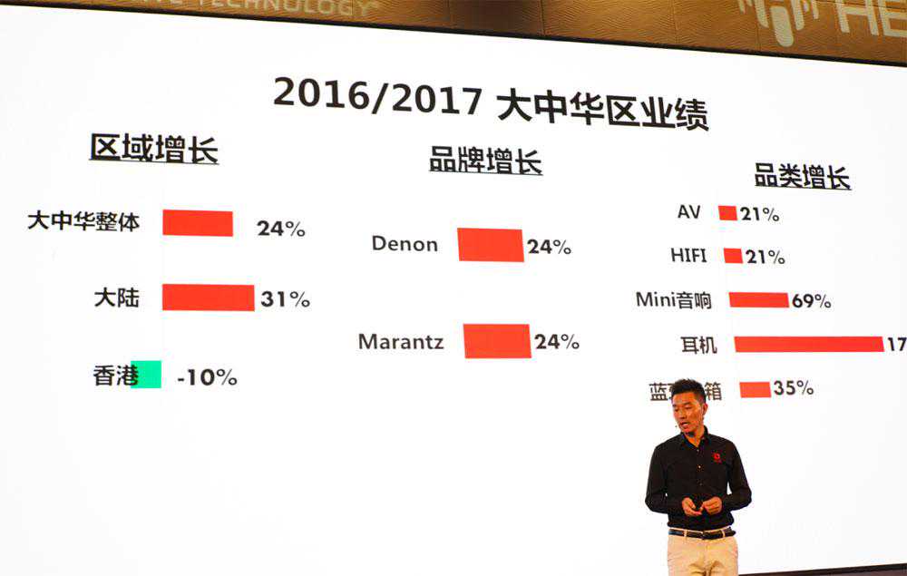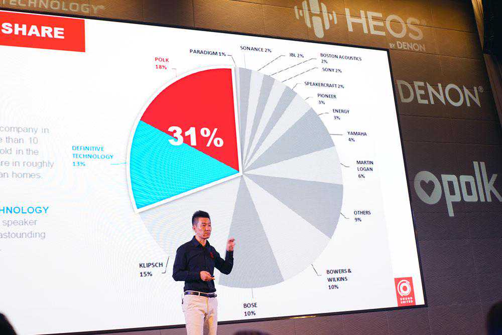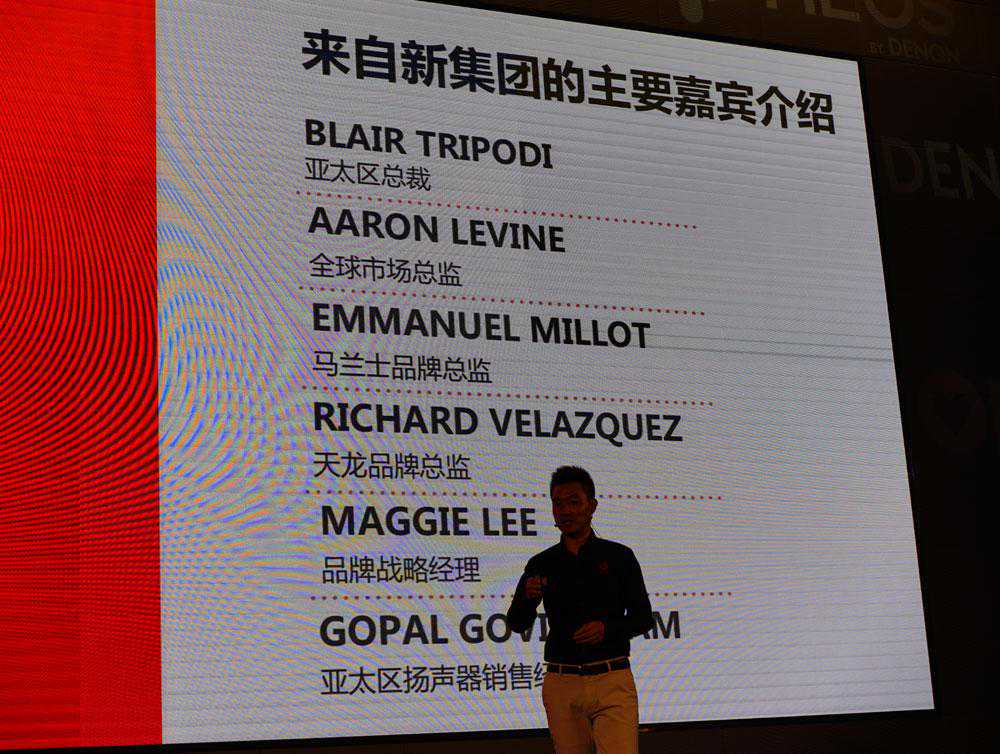 宋总介绍说,收购D+M集团后,SoundUnited如今拥有了天龙、马兰士、PolkAudio(普乐之声)和DefinitiveTechnology、HEOS(和乐氏)、BostonAcoustics(波士顿声学)等众多知名影音品牌,所以参加本次大会的新集团嘉宾阵容庞大,包括亚太区总裁BlairTripodi、全球市场总监AaronLevine以及马兰士品牌总监、天龙品牌总监、品牌战略经理以及亚太区扬声器销售经理等。