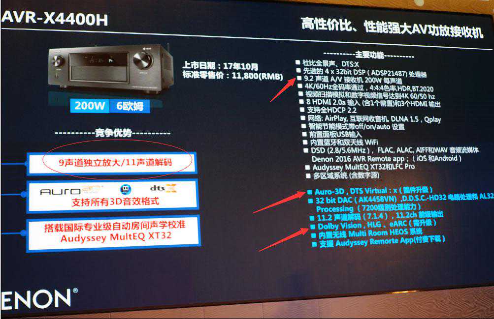 摩大大已经在每一款功放上最有特点的地方,打个注标。能让AVR-X4400H归类为天龙高端功放的原因,便在于他能提供7.1.4声道的前级解码输出能力。
