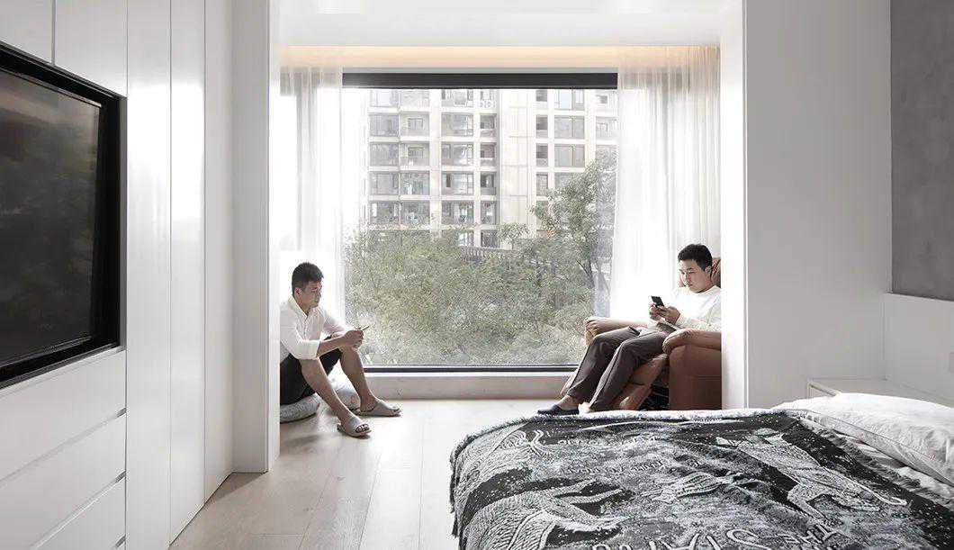 黑白元素的点缀最为经典,如钢琴黑白键般优雅,房间最佳的景观位,都留给了自我独处时刻,黑色窗框勾勒出流动变幻的风景,平淡无奇却触动人心。