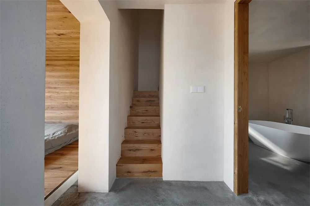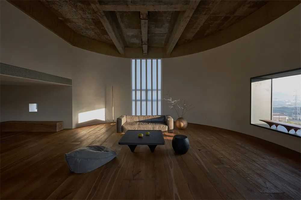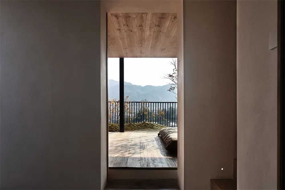 石头、土、木、植物,完整而原始的要素容纳进一个空间。开窗比例、角度及栏杆的设置都经过细腻的推敲。当阳光投入屋子里面,慢慢在家具和地板上移动,光影形成不断变化。