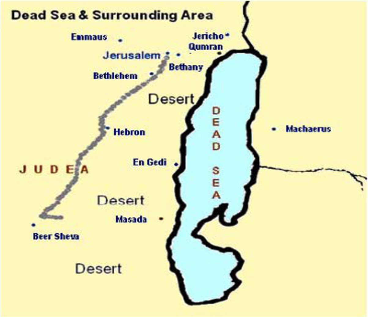 大家看这幅图,死海在这里,发现这些经卷的这个洞后来就被命名为洞穴1,如果大家去旅游的话,差不多就会站在图示的这个地方,然后你能够看到的应该是洞穴4、5,应该是看不到洞穴1、2的。这是稍微早一点的地图,我还给大家准备了另一幅比较新的图,在这张图上可以看到2017年新发现的洞穴12。