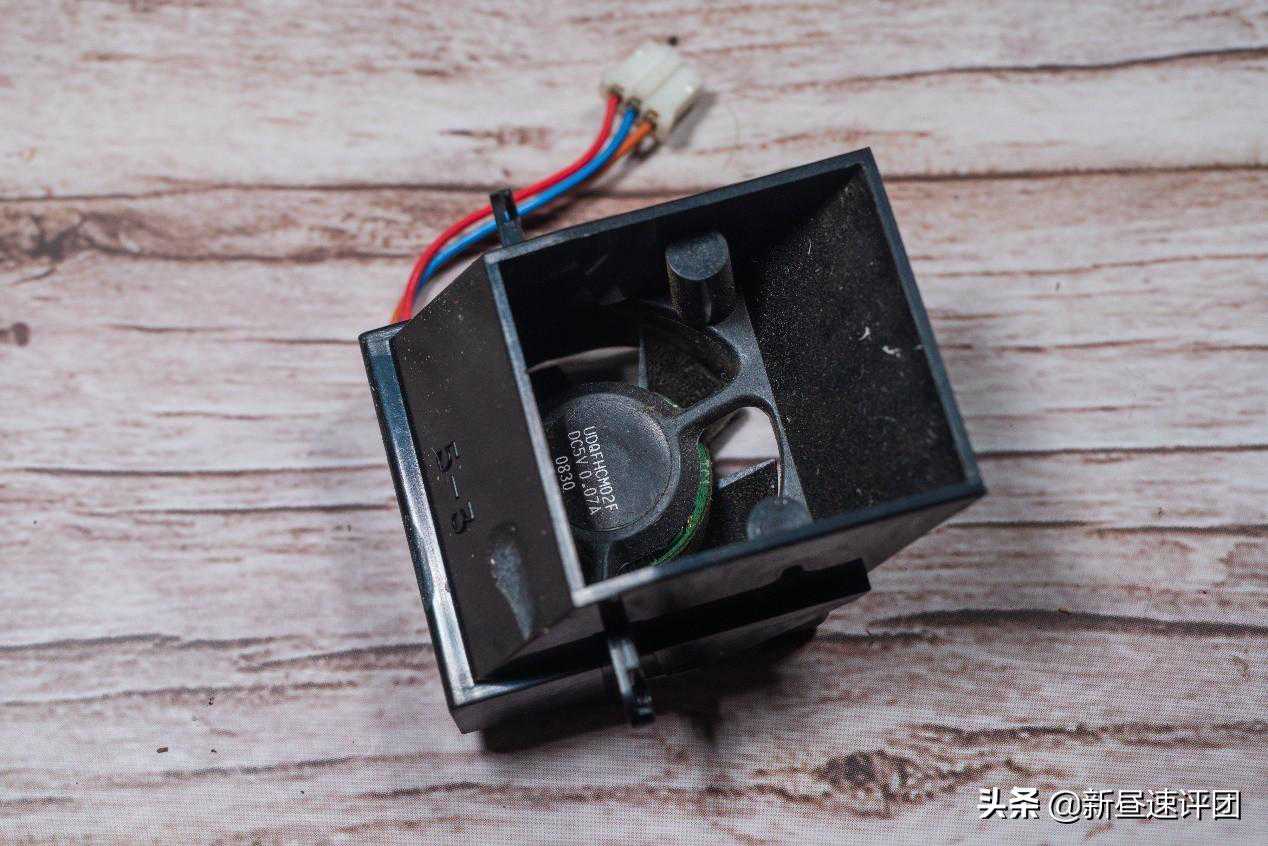 拆下风扇,风扇使用一个导风口设计,另外可以看到灰尘没有很多,说明这台机器就没怎么的用过